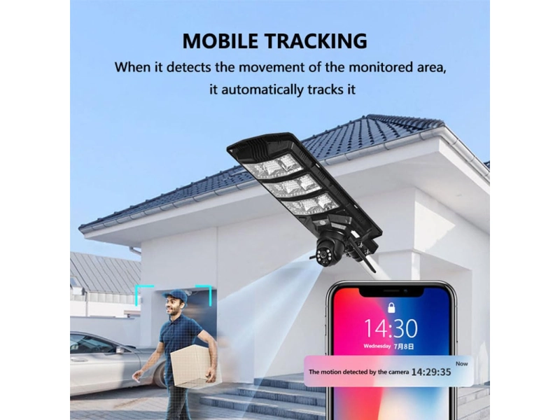 Това иновативно улично осветление комбинира високоефективно соларно осветление с интелигентна камера, предоставяйки 24/7 наблюдение и надеждност дори при неблагоприятни условия като дъжд 🌧️ и облачност 🌥️. Идеално за осигуряване на сигурност и осветление, това устройство предлага двупосочна комуникация чрез вградено аудио, което го прави изключително удобно и функционално.Основни характеристики:Соларен панел: ☀️ Монокристален силиций A клас (6V/24W), осигуряващ бързо и ефективно зареждане, дори при облачно време.Мощна батерия: 🔋 LiFePO4 18Ah, устойчива на температурни колебания, предлагаща дълготрайна работа.Ярка LED светлина: 💡 180 SMD2835 диода, с цветова температура от 6500-7500K и 2000lm за мощно осветление.PTZ камера с висока резолюция: 🎥 5MP камера с ротационни функции за пълно покритие и проследяване на движещи се обекти.Запис и съхранение: ☁️ Облачно съхранение и TF карта (до 256GB) за сигурно архивиране на видеоматериали.Двупосочно аудио: 🗣️ Възможност за комуникация в реално време чрез приложението V380Pro.IP65 защита: 💪 Устойчиво на прах, дъжд и екстремни метеорологични условия, осигуряваща надеждност.Автономност: 🔋 Работи до 4-5 дни без слънчева светлина, дори при дъждовни и облачни условия.Предимства:2 в 1: 💡📹 Комбинира осветление и видеонаблюдение в едно устройство.Интелигентно проследяване: 🔍 Автоматично разпознаване и следене на движещи се обекти.Лесна инсталация: 🔧 Без нужда от сложни кабели и окабеляване.Дълъг живот на батерията: ⏳ Енергийно ефективен режим за непрекъсната работа.Идеално за: 🏡 Вили, улици, паркинги, ферми, строителни обекти и отдалечени райони.Създайте по-безопасна и осветена среда с интелигентната соларна лампа с камера - V380Pro! 🌟