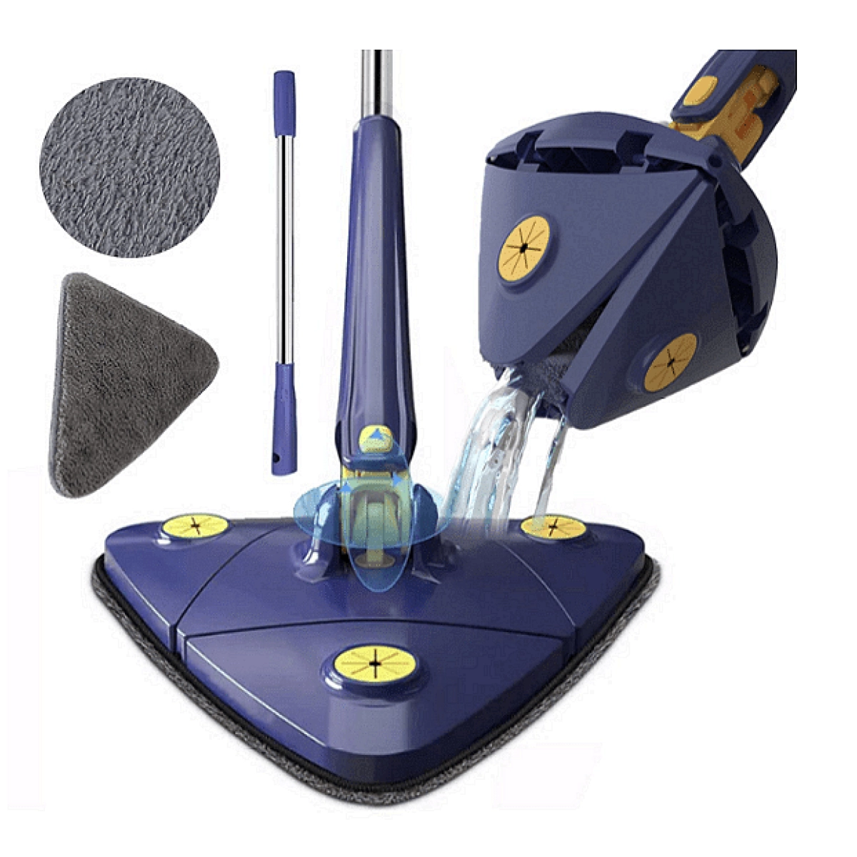 360° триъгълен моп с микрофибърни кърпи е иновативно решение за безупречно почистване на дома и офиса. Благодарение на уникалната си форма и въртящата се глава на 360 градуса, този моп достига до най-труднодостъпните места, осигурявайки бързо и лесно премахване на замърсявания от всякакви повърхности.