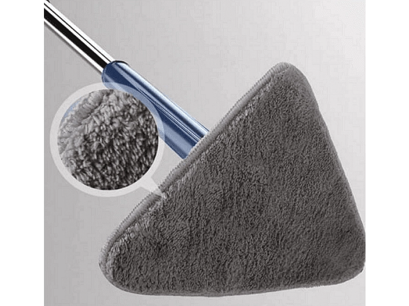 Мопът има триъгълна форма, която улеснява почистването в ъглите и трудно достъпните места.