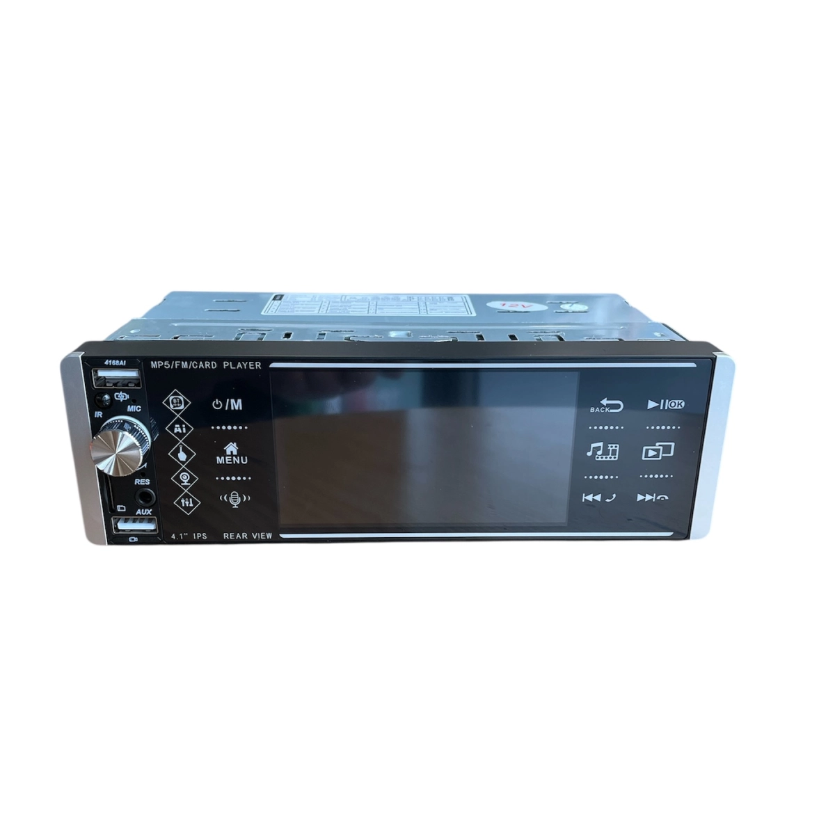 Автомобилно MP3/MP5 радио с 4.1” екран, Bluetooth и USB предлага съвременно и удобно решение за развлечение по време на път. Съчетавайки функционалност и лесно управление, този модел е перфектен избор за всеки шофьор, който иска качествен звук и разнообразни възможности за свързване.