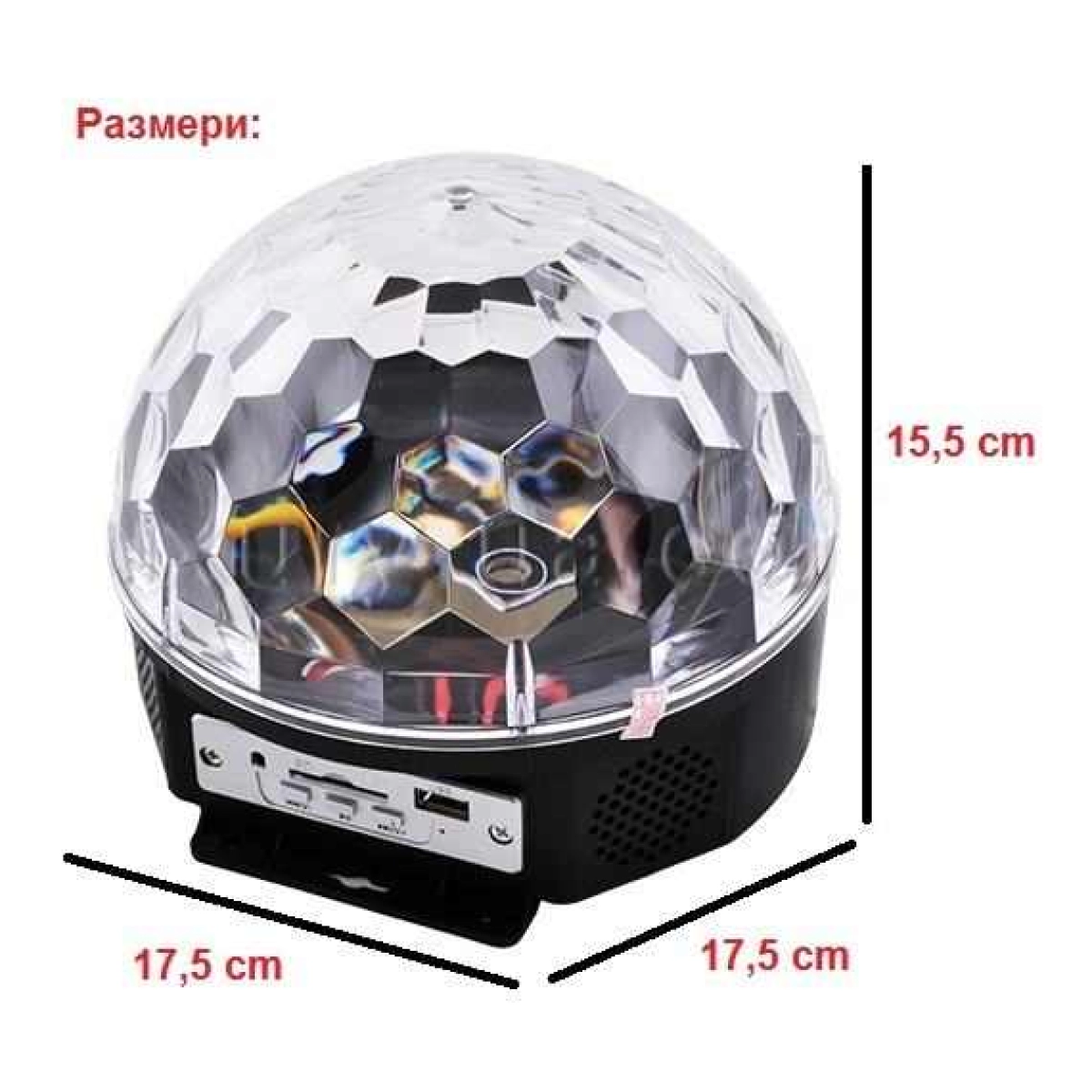 Голяма LED диско топка с впечатляващи цветни светлинни ефекти Тази голяма LED диско топка е перфектното решение за създаване на динамична и цветна атмосфера на всяко парти или събитие. Със своите ярки и разнообразни светлинни ефекти, тя превръща всяко помещение в оживено диско пространство, което привлича вниманието и вдъхва настроение. Основни характеристики на LED диско топката Мощна LED осветеност, която осигурява наситени и ярки цветове за впечатляващи светлинни шоута Голям размер, гарантиращ по-голямо покритие и по-добър визуален ефект при осветяване на помещения Разнообразни светлинни режими, позволяващи адаптиране към различни видове събития и музикални стилове Възможност за управление на светлинните ефекти чрез дистанционно управление за удобство и лесна настройка Здрава и устойчива конструкция, подходяща както за домашна употреба, така и за професионални събития Лесен монтаж и включване към стандартен електрически контакт Предимства и приложения на голямата LED диско топка Тази диско топка е идеална за създаване на уникална атмосфера на партита, клубове, семейни празненства и всякакви социални събития. Благодарение на цветните светлинни ефекти и възможностите за персонализация, тя допринася за повишаване на настроението и забавлението на гостите. Управлението с дистанционно улеснява смяната на ефектите без необходимост от ставане, осигурявайки комфорт и контрол. Поръчайте сега голямата LED диско топка и внесете незабравима атмосфера във вашето парти!