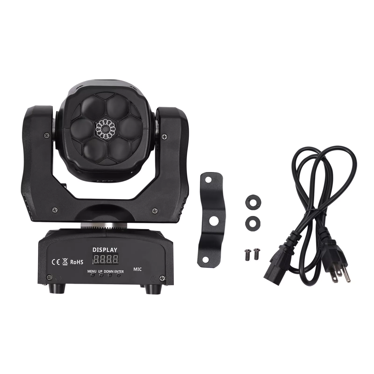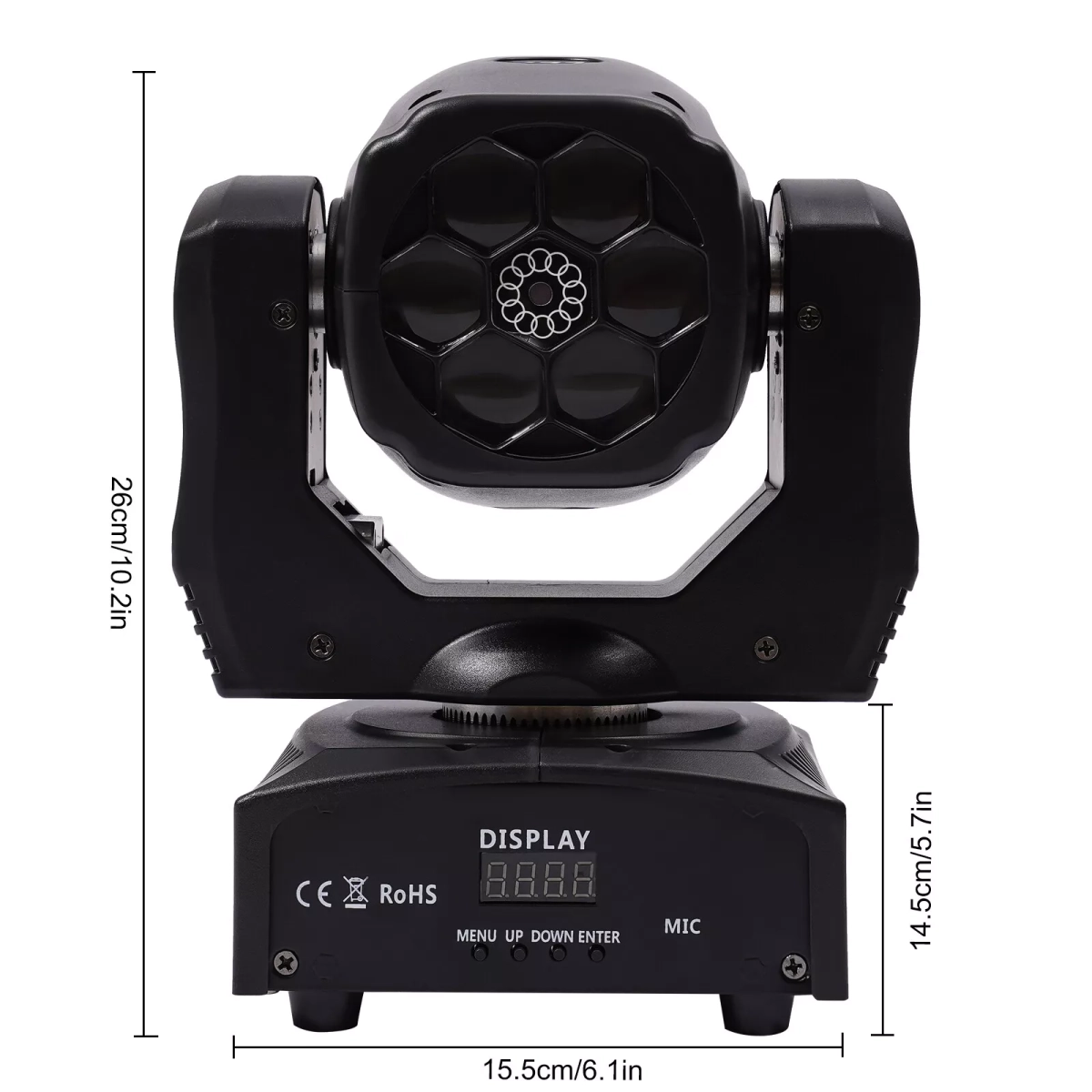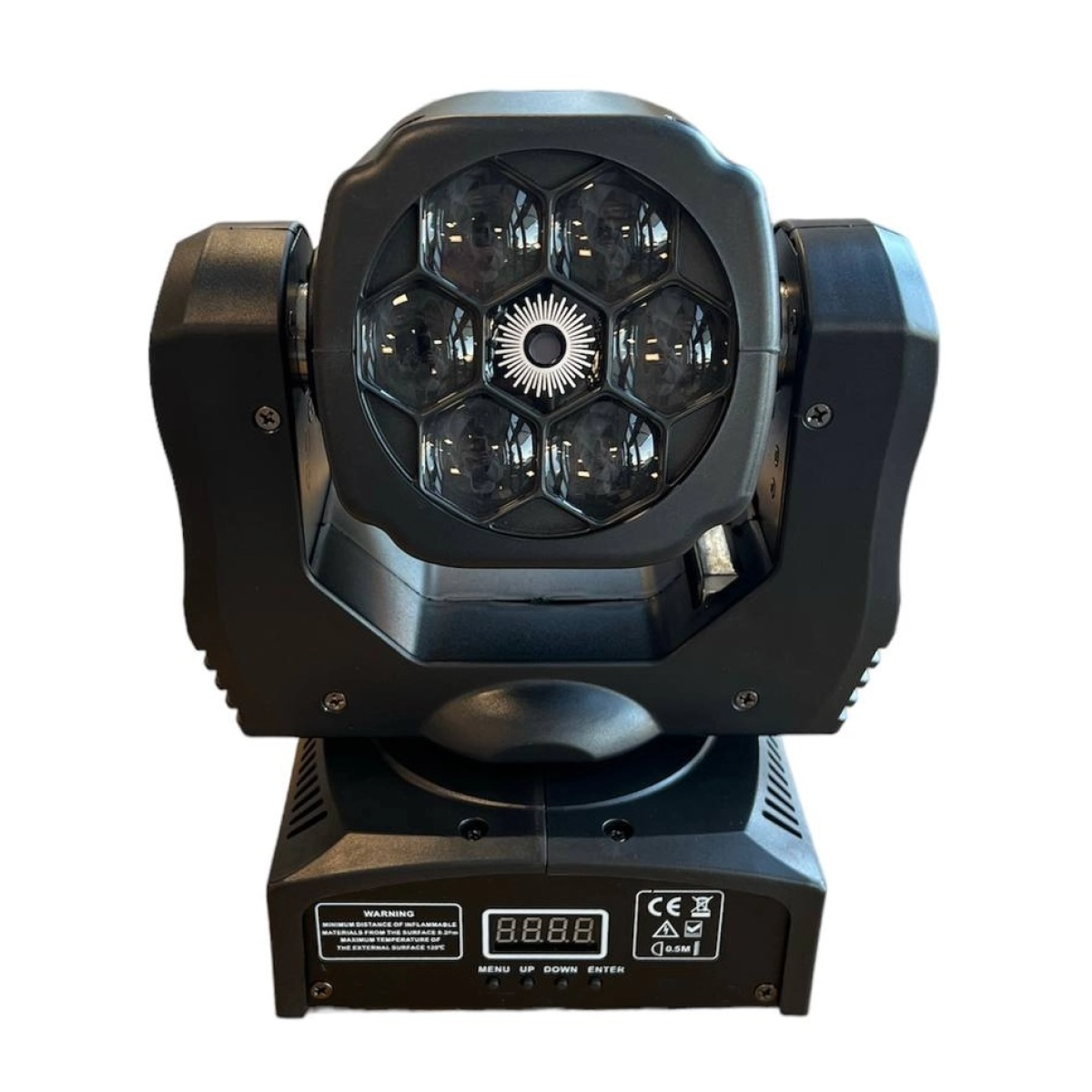 • 6x12W RGBW LED диода – четирицветни LED модули, които предлагат богато и наситено цветово излъчване, подходящо за разнообразни светлинни ефекти.