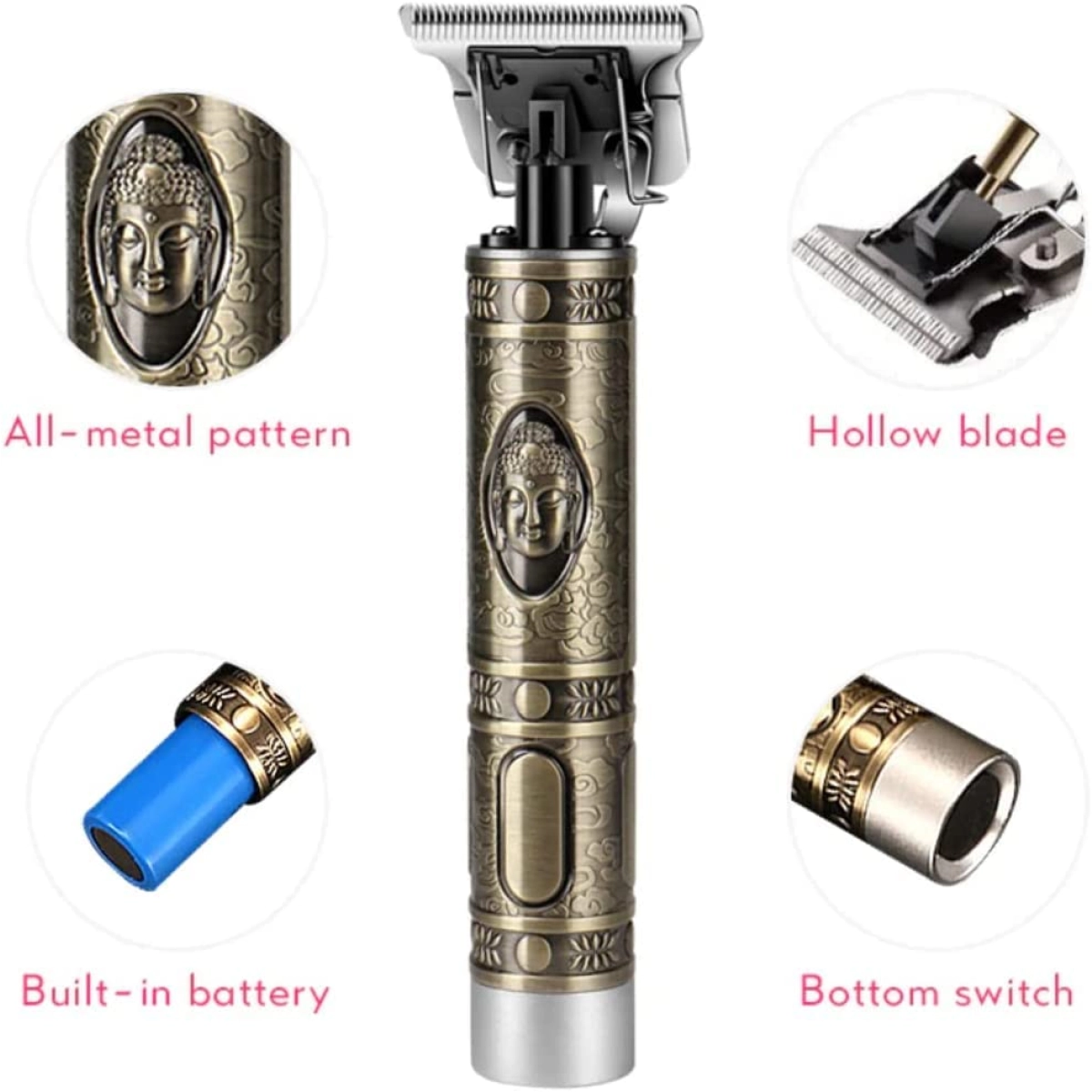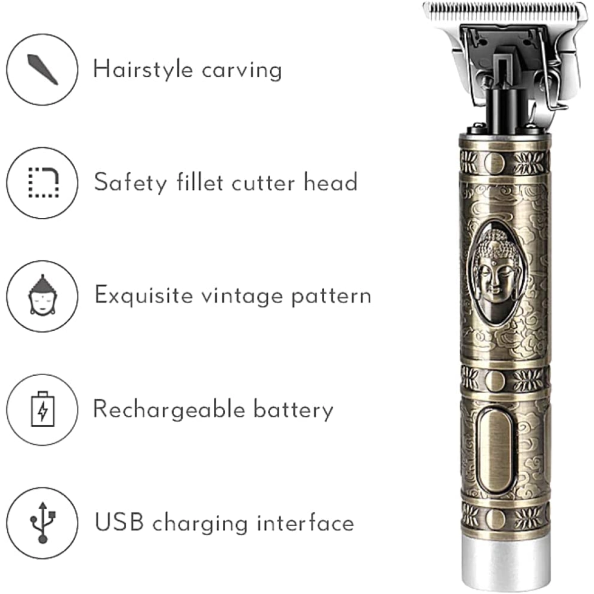 - Винтидж дизайн с метален корпус, гравиран с образа на Буда, придава уникален и стилен вид на машинката.