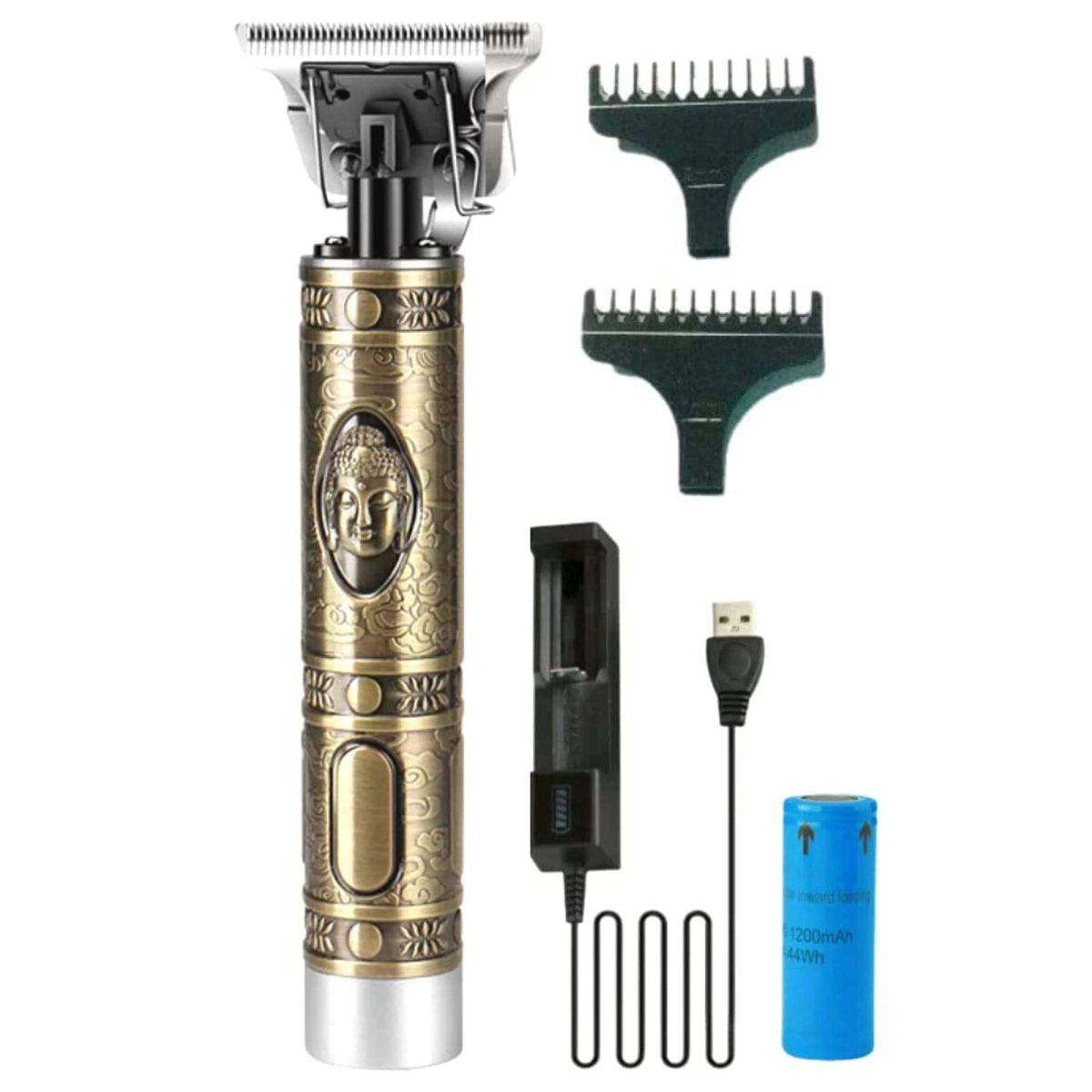 Метална машинка за подстригване Kemei KM-1974A с винтидж дизайн за прецизна мъжка грижа Металната машинка за подстригване Kemei KM-1974A съчетава стилна винтидж визия с професионални възможности за поддържане на къса прическа и брада. Тази електрическа машинка е подходяща за всеки мъж, който търси качество, издръжливост и удобство при оформяне на косата и мустаците. Основни характеристики Винтидж дизайн с метален корпус, гравиран с образа на Буда, придава уникален и стилен вид на машинката. Т-образни ножчета от висококачествена въглеродна стомана за прецизно и гладко подстригване без дразнене на кожата. Ергономичен и олекотен корпус, който осигурява удобен захват и пълна свобода на движения при работа. Дълготрайна батерия с до 2 часа безжична работа след пълно зареждане, позволяваща комфортно използване без кабел. Три приставки за фиксиране на дължината на косата – 1 мм, 2 мм и 3 мм, подходящи за оформяне на къса прическа, брада, бакенбарди и мустаци. Предимства на машинката Kemei KM-1974A Прецизност и надеждност – остри ножчета и стабилна конструкция гарантират равномерни резултати без неприятни изненади. Лесна поддръжка – металният корпус е издръжлив и лесен за почистване, а ножчетата могат да се сменят и заточват при необходимост. Удобство при работа – машинката е лека и балансирана, което намалява умората дори при продължително ползване. Многофункционалност – подходяща не само за коса, но и за оформяне на брада, мустаци и бакенбарди с различна дължина. Естетика и стил – уникалният винтидж дизайн прави машинката не само инструмент за грижа, но и аксесоар с характер. Какво включва комплектът Машинка за подстригване Kemei KM-1974A с метален корпус и гравирана декорация. Три приставки за регулиране на дължината при подстригване и оформяне. Зарядно устройство за бързо и удобно зареждане на батерията. Четка за почистване, която улеснява поддръжката на ножчетата и корпуса. Инструкции за употреба, които помагат за оптимална работа и дълготрайност на уреда. Изберете машинката за подстригване Kemei KM-1974A, за да получите качествен продукт с оригинален дизайн и професионални резултати. Поръчайте сега и се насладете на лесна и ефективна грижа за своята прическа и брада!