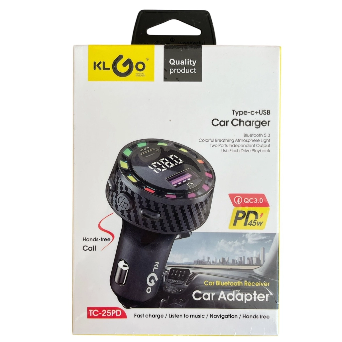 Изберете KLGO TC-25PD 45W автомобилно зарядно и FM трансмитер с Bluetooth 5.3 за надеждно и многофункционално решение, което ще направи всяко пътуване по-удобно и приятно!