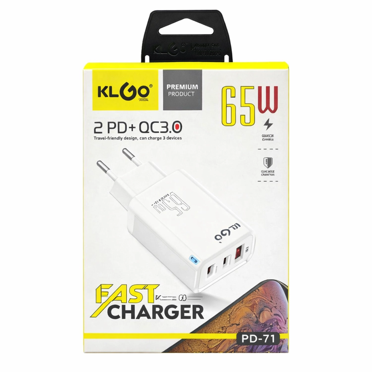 Зарядно KLGO PD-71 с 65W за ефективно и бързо захранване на устройства. Разгледай и поръчай сега!
