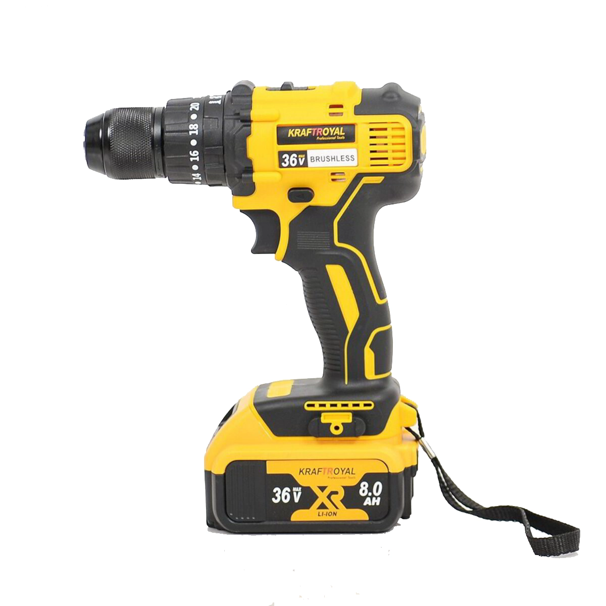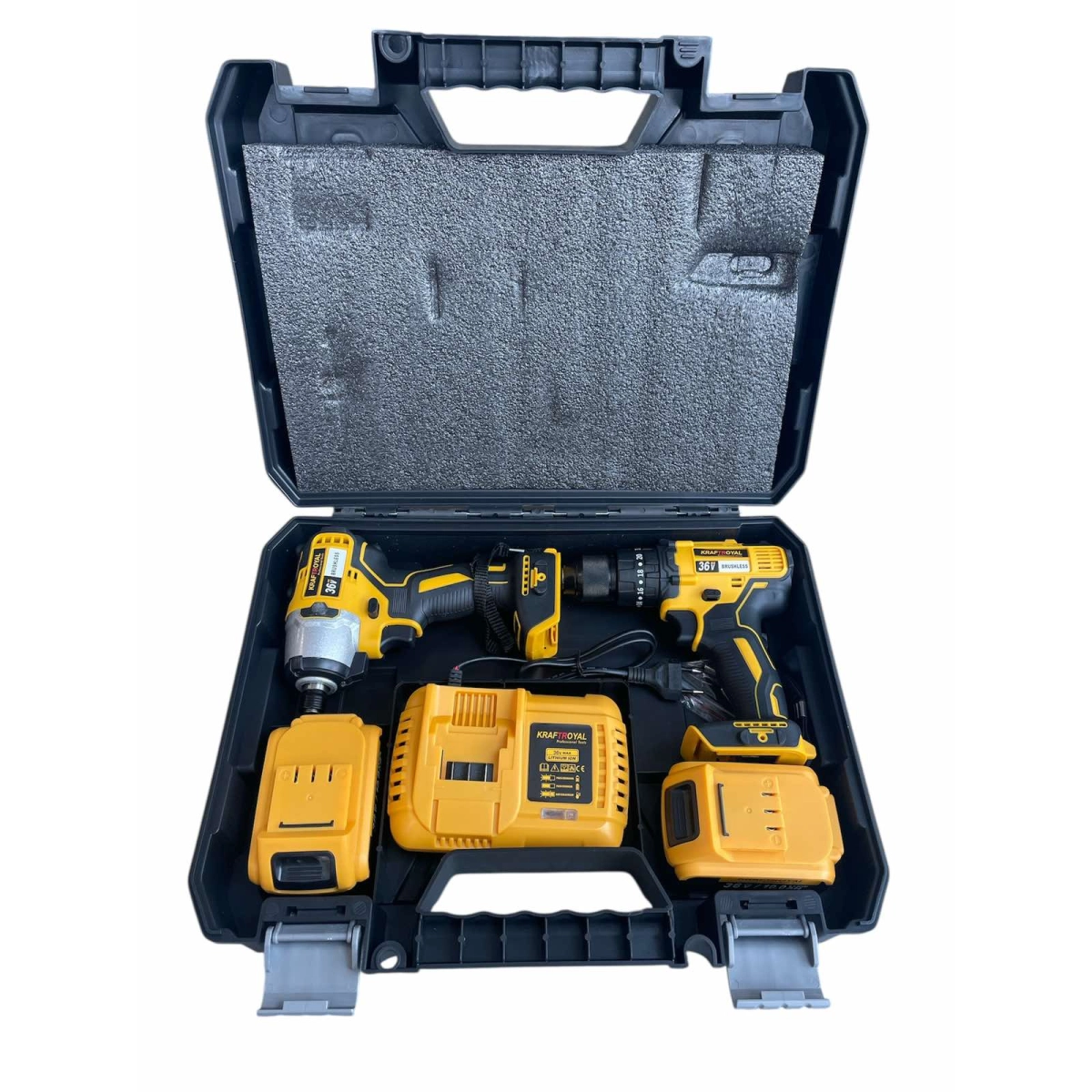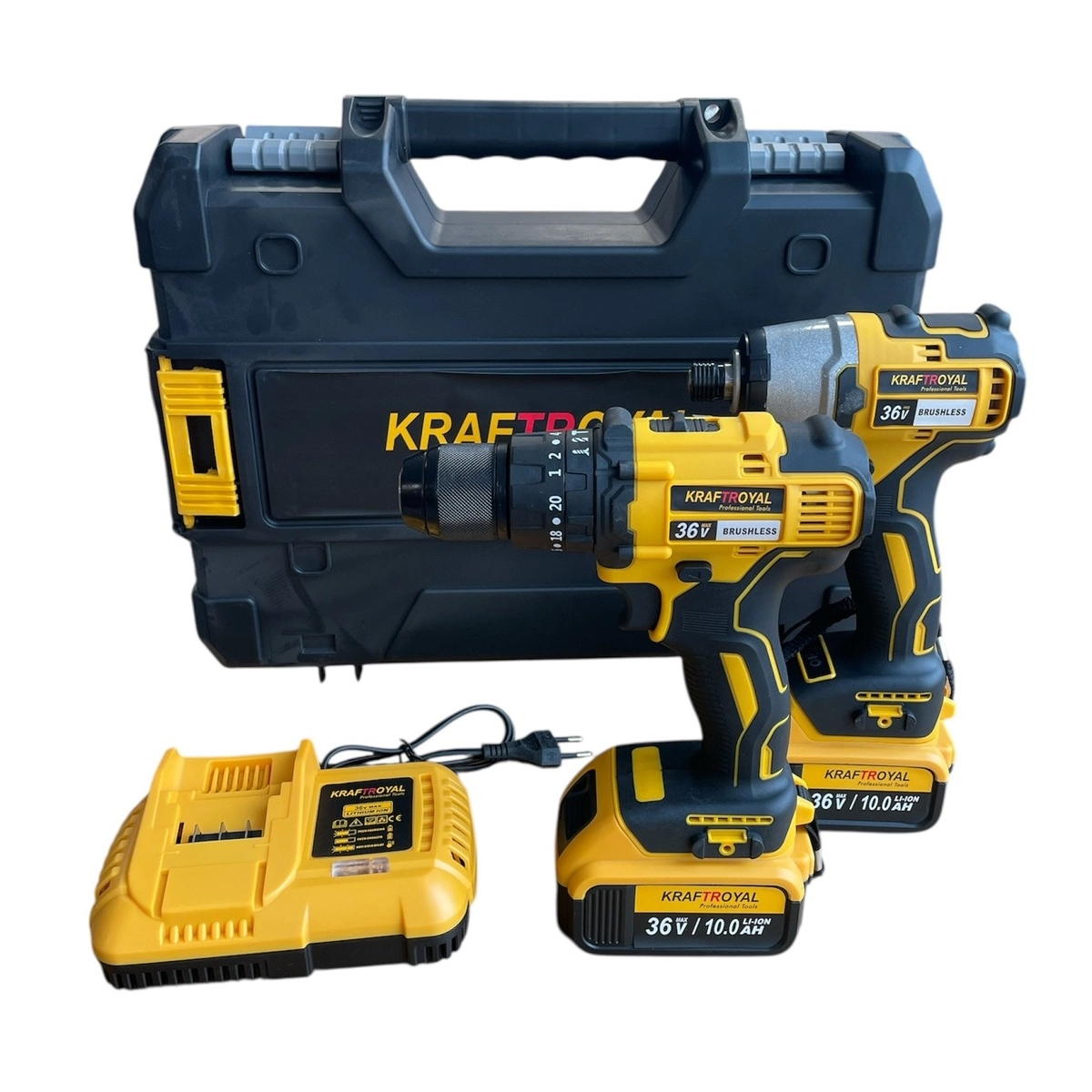 • Комплект жълт акумулаторен безчетков винтоверт и импакт 36V 8Ah KraftRoyal - KraftRoyal 1734