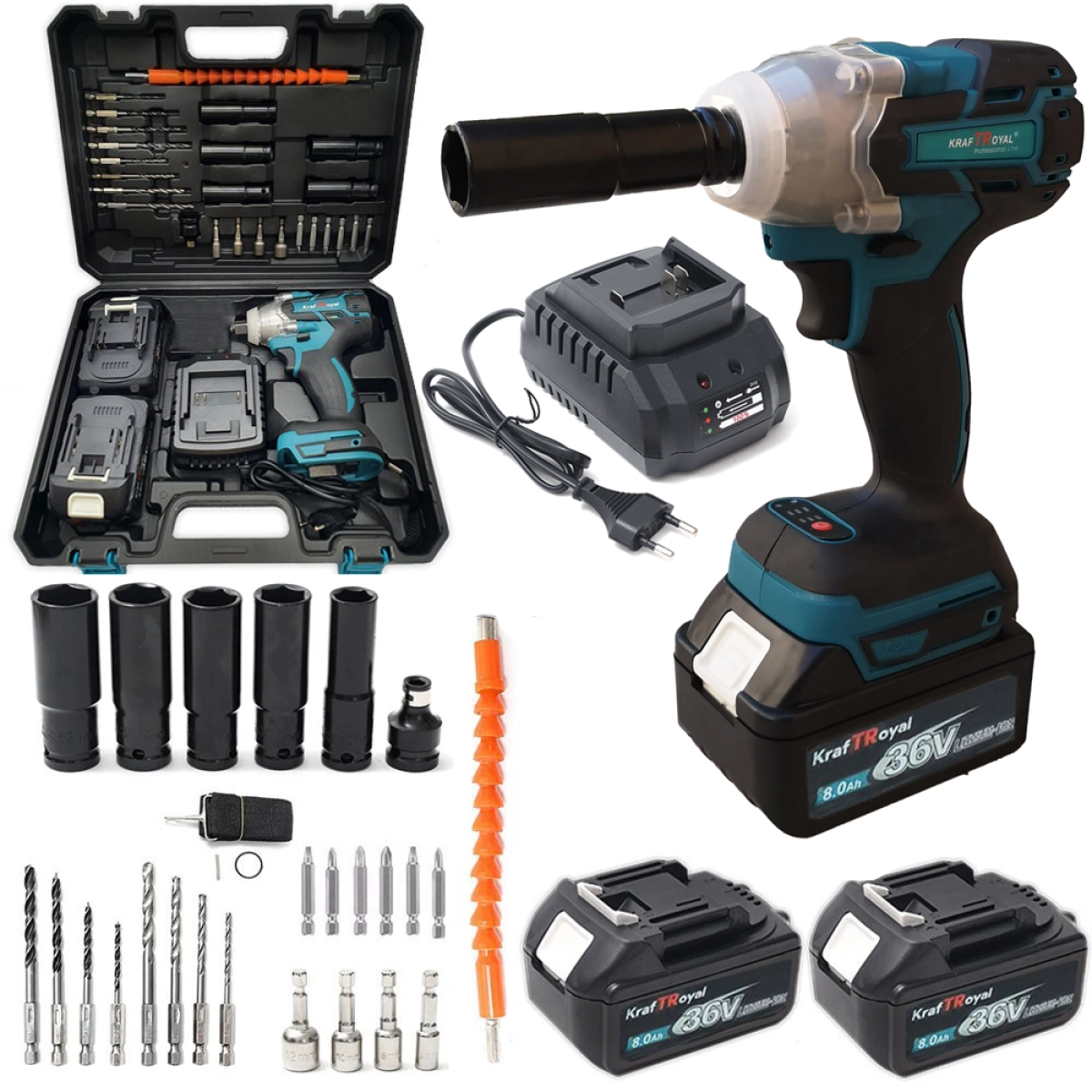 Акумулаторен ударен гайковерт KraftRoyal 36V 8Ah с пълен комплект от 35 части