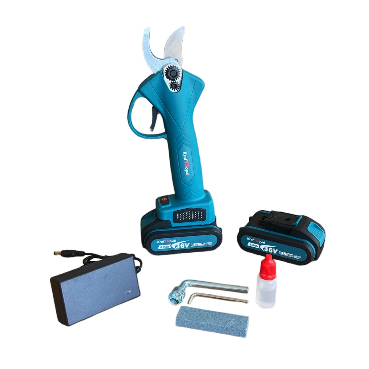 Мощна акумулаторна ножица KraftRoyal с безчетков мотор и 36V батерия 8Ah. Лесна за работа в градината. Купи сега!