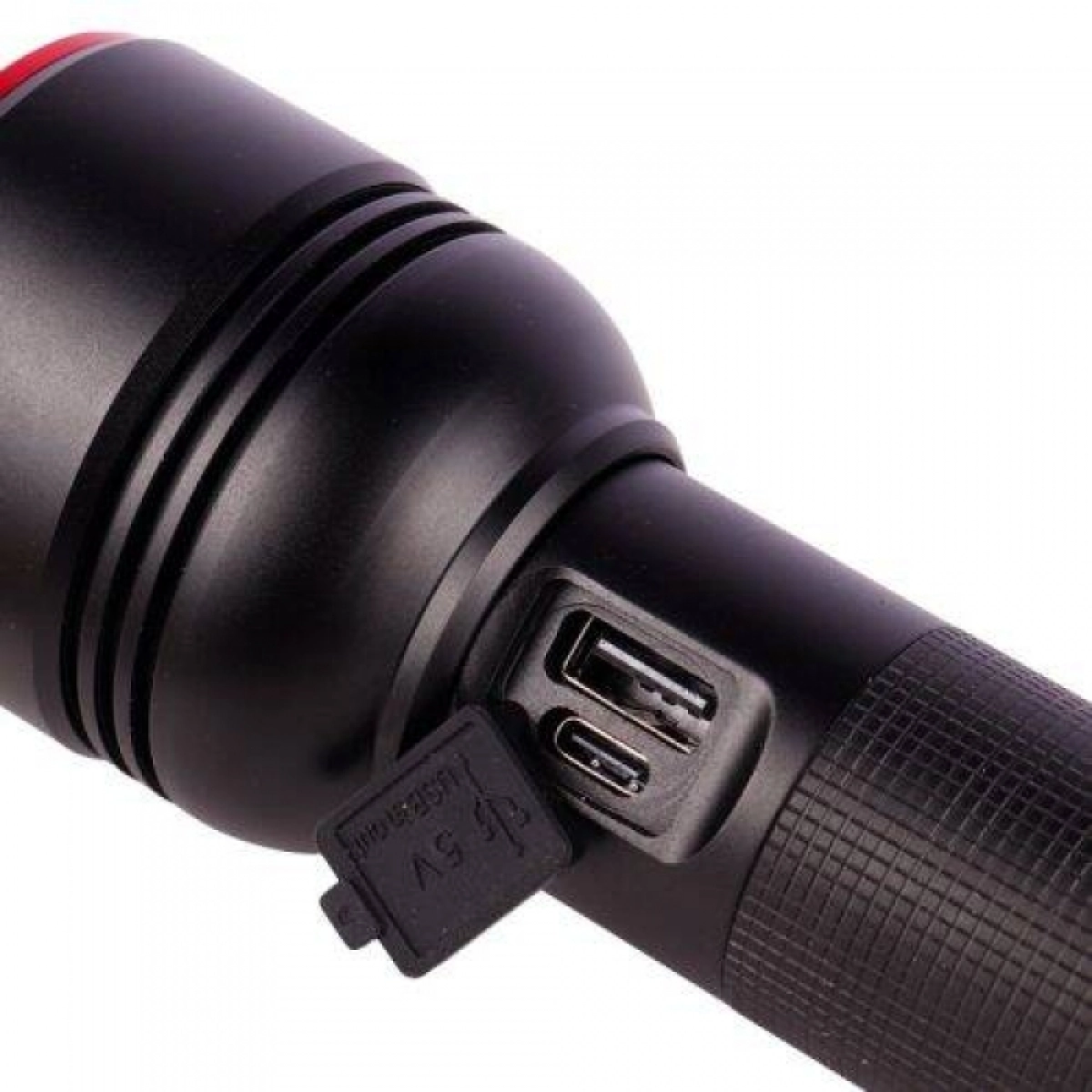 - Вградена литиево-йонна батерия 26650 с капацитет 8800 mAh, която осигурява дълъг живот на фенера без нужда от честа смяна на батерии.
