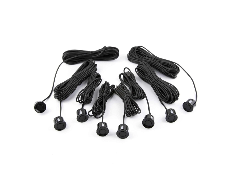 Характеристика:-Автоматично включване на системата при вкл. на заден ход на автомобила.Автотестване и начало на отчитане на данни - 0,5 сек.;-Покрива изцяло пространството зад автомобила благодарение на 8-те активни сензора ; Най добро ниво на чувствителност има за обекти отстоящи от 0,3 м до 1,5 м;-Забава на подаване на сигнал от сензора до дисплея - 0,08 сек.-Система за индикация вкл. комплект от по 7 LCD цветни светодиода(за отстояние от ляво и от дясно) и LED дисплей с цифрово показание.Допълнителен зумер(диапазон 70-90 dB) при опасно малко отстояние.-Датчиците(сензорите) са влагозащитени; и запазват функционална годност в температурен диапазон -40С до + 80С (при зацапване с кал следва да се почистват)В КОМПЛЕКТА:-Сензори(капсуловани ,влагозащитени) 8 бр с кабел;-Електронен блок (размери-кутия цигари)-Индикатор (със светодиоди и дисплей) за монтаж в зона на табло ;-спомагателни пособия (инструкция, монтажни подложки и т.н.)-фрезер (комбинирана бургия) за точно разпробиване и прецизен монтаж ;Време за монтаж - около 45 мин, без да е потребно техническо образование или висока сръчност.
