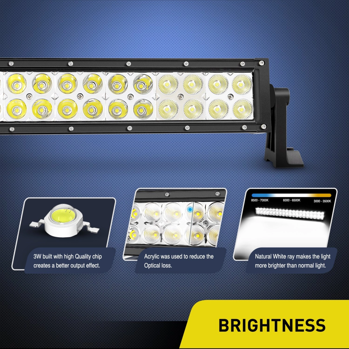Представяме ви автомобилен LED бар CREE 120W, проектиран за интензивно и надеждно осветление при всякакви условия. Този висококачествен LED прожектор осигурява силен и ясен светлинен поток, идеален за офроуд пътувания, професионални дейности и допълнително осветление на вашия автомобил.