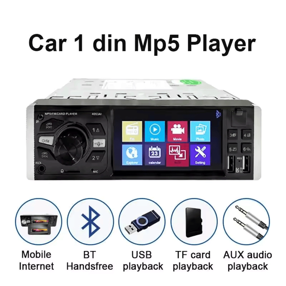 Модерно автомобилно MP5 радио с Bluetooth, USB, AUX и SD карта FS-16593 Автомобилното MP5 радио FS-16593 е съвременно мултимедийно устройство, което предлага пълноценно аудиовизуално преживяване в колата. С интегриран Bluetooth, USB, AUX и слот за SD карта, това радио е идеалното решение за слушане на музика, гледане на видео и провеждане на безжични разговори по време на път. Основни характеристики на автомобилното MP5 радио FS-16593 7-инчов LCD дисплей с висока резолюция 800x480 пиксела, осигуряващ ясна и ярка картина при възпроизвеждане на видео и визуализация на менюта. Bluetooth връзка за лесно сдвояване с мобилни телефони, позволяваща безжично слушане на музика и провеждане на Hands-Free разговори за безопасно шофиране. Поддръжка на разнообразни мултимедийни формати като MP3, MP4, WMA, AVI и JPEG, което гарантира възможност за възпроизвеждане на множество аудио и видео файлове. Вграден FM тунер с честотен обхват от 87.5 до 108 MHz и възможност за запаметяване на предпочитани радиостанции за бърз достъп. Множество входове за свързване – USB порт, слот за SD карта и AUX вход, които осигуряват гъвкавост при възпроизвеждане на медия от най-различни устройства. Изходна мощност от 4 х 45 W, която гарантира чист и мощен звук, подходящ за всеки автомобилен интериор. Дистанционно управление, което улеснява управлението на устройството без да се разсейвате по време на шофиране. Предимства на MP5 радиото FS-16593 за вашия автомобил Удобство и безопасност: Bluetooth функцията позволява безжични разговори и слушане на музика, което намалява необходимостта от ръчно управление по време на движение. Гъвкавост при възпроизвеждане: С възможността за свързване чрез USB, SD карта и AUX вход, може да пускате любимите си песни и видеоклипове от различни носители. Стилен дизайн: Изчистеният и модерен външен вид с голям LCD екран допълва интериора на всяко превозно средство и осигурява лесна навигация в менюто. Мощен звук: Изходната мощност гарантира силен и качествен звук, който ще направи всяко пътуване по-приятно и забавно. Лесен монтаж и управление: Интуитивният интерфейс и дистанционното управление позволяват бързо и комфортно взаимодействие с устройството. За какво се използва автомобилното MP5 радио FS-16593 Този модел е предназначен за модерни автомобили, които търсят универсално мултимедийно решение за забавление и комуникация. С него можете да слушате радиостанции, да възпроизвеждате музика и видео файлове, да осъществявате безжични разговори и да свържете външни устройства. Подходящ е за всички, които ценят качествен звук, удобство и функционалност в автомобила си. Изберете автомобилното MP5 радио FS-16593 и се насладете на върховото мултимедийно изживяване по време на всяко пътуване!