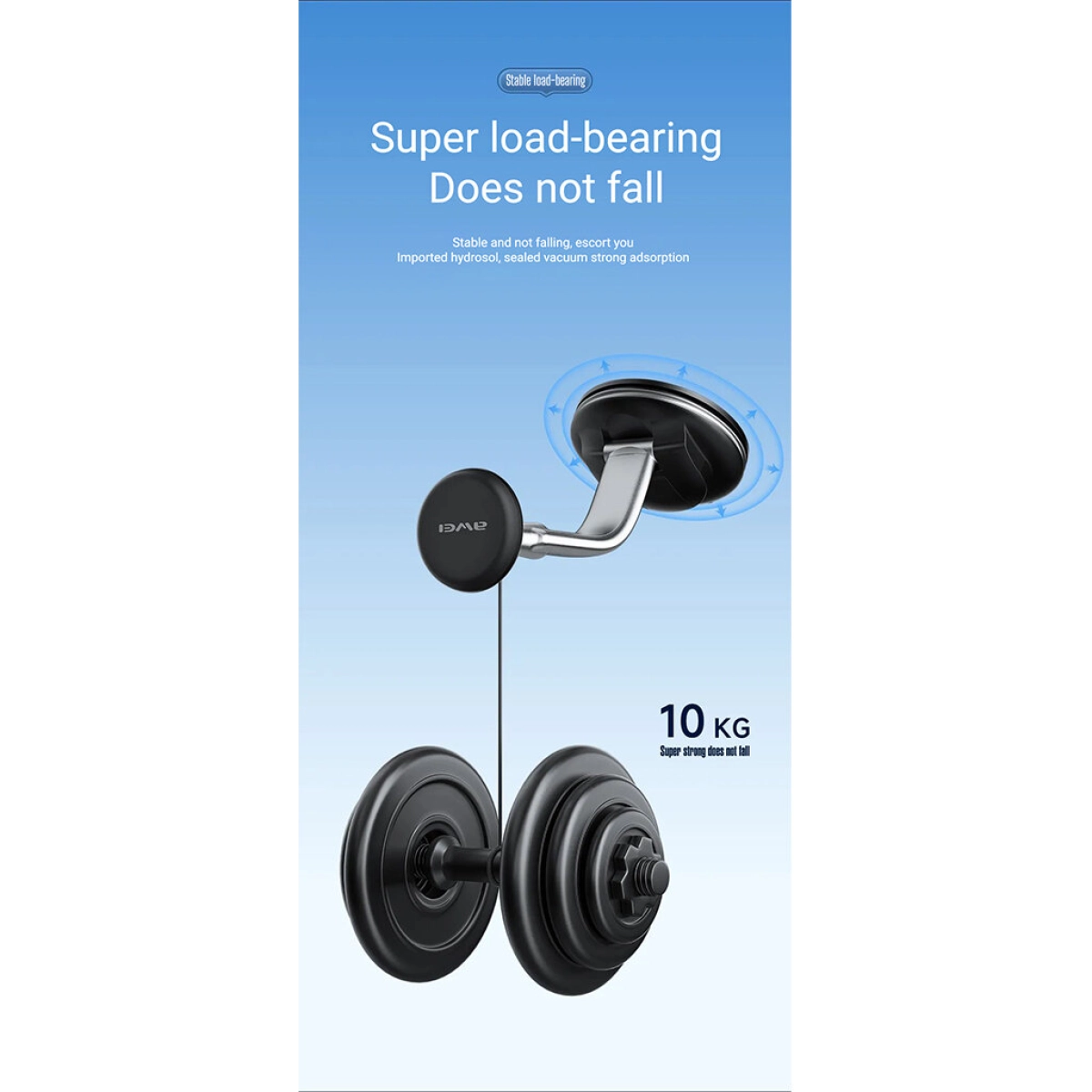 - Силна вендуза с капацитет до 10 кг, гарантираща стабилно закрепване дори по неравни пътища.
