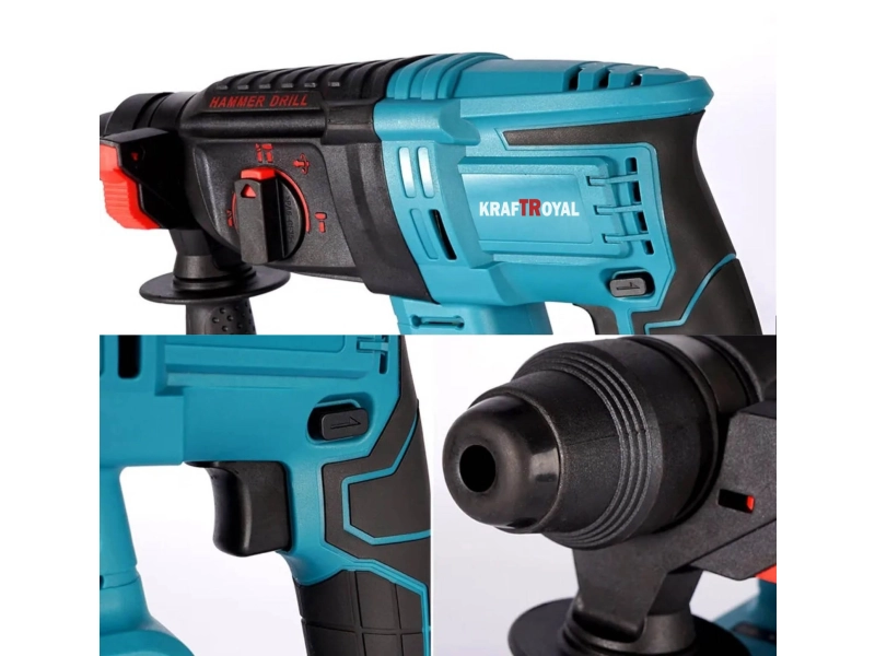 Немски Безчетков Акумулаторен Перфоратор/Къртач 36 волта + 2 батерии 8Ah – Li-ion + Зарядно устройство + 5 накрайника + Куфар за лесно транспортиране. Марка: KrafT Royal Производител: KrafT Royal Germany Гаранция: 24 месецаПредимства:– Мощна ударна система с 3.0 J – Уникална литиево-йонна технология Premium на KrafT Royal, за по-голяма експлоатационна продължителност и ненадминат мощностен ресурс на акумулаторната батерия. – С 4 режима за универсално приложение. – Електронна защита на акумулаторните клетки (ECP) на KrafT Royal: предпазва акумулатора от претоварване, прегряване и дълбоко разреждане. – Практичен индикатор на нивото на зареждане на акумулатора с 3 светодиода. – Вградено светодиодно осветление за осветяване на работната зона и на тъмни места. – Независимо от заредеността акумулаторът, може да се зарежда по всяко време, без да се повредят клетките. – Оптимизиран безчетков мотор и механизъм за по-бърза работа. – Акумулаторният перфоратор се държи по-удобно благодарение на L-образна конструкция. – Предлага функции като Vibration Control и KickBack Control за работа с отлично съотношение цена – производителност.Характеристика:Мощност: 36 волта Акумулаторни батерии: 8.0Ah Li-Ion Сила на удара: 3J Тип патронник: SDS plus Тип захранване: Акумулаторно Честота на ударите при номинални обороти: 0 – 5.100 1/мин Номинални обороти: 0 – 1.800 1/мин Диаметър на отвора в бетон със свредло за перфоратори: 4 – 18 мм Оптимална област на приложение в бетон със свредло за перфоратори: 6 – 10 мм Максимален диаметър на пробиване в метал: 13 мм Максимален диаметър на отвора в дърво: 30 мм Тегло без акумулатор: 2.3 кгКомплектът съдържа:1 брой Акумулаторен Перфоратор 2 броя Батерии 36V / 8.0 Ah 1 брой Зарядно устройство 1 брой Ръкохватка 1 брой Куфар за лесно транспортиране