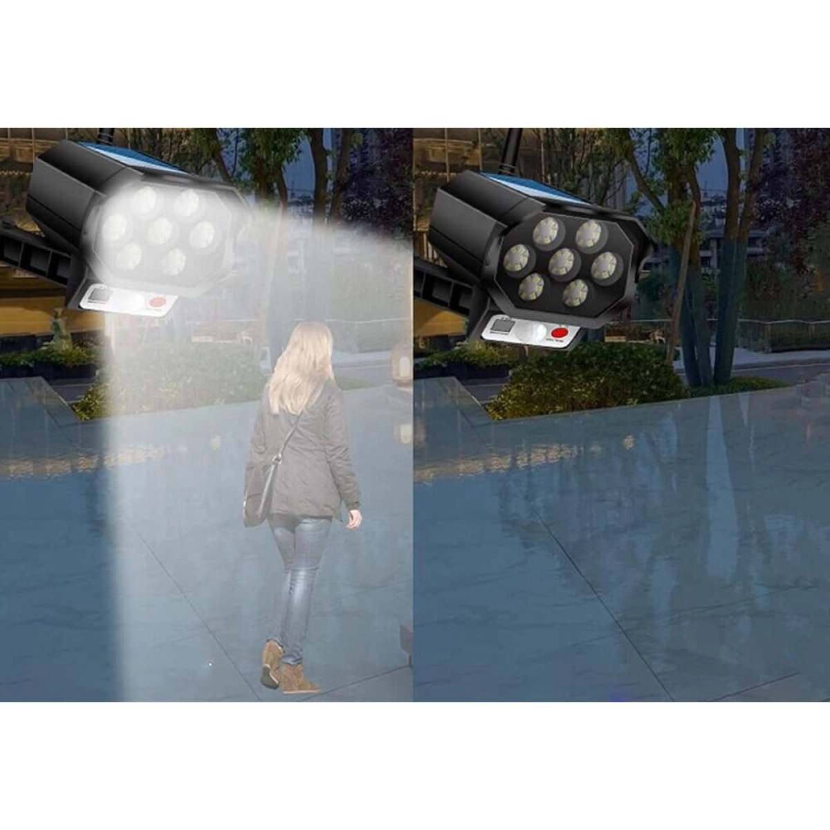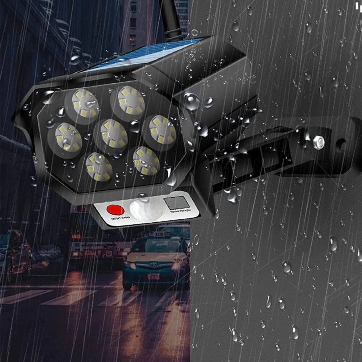 - Вграден дизайн на камера – лампата е оформена като охранителна камера, което създава допълнително възпиращо въздействие върху нежелани посетители.