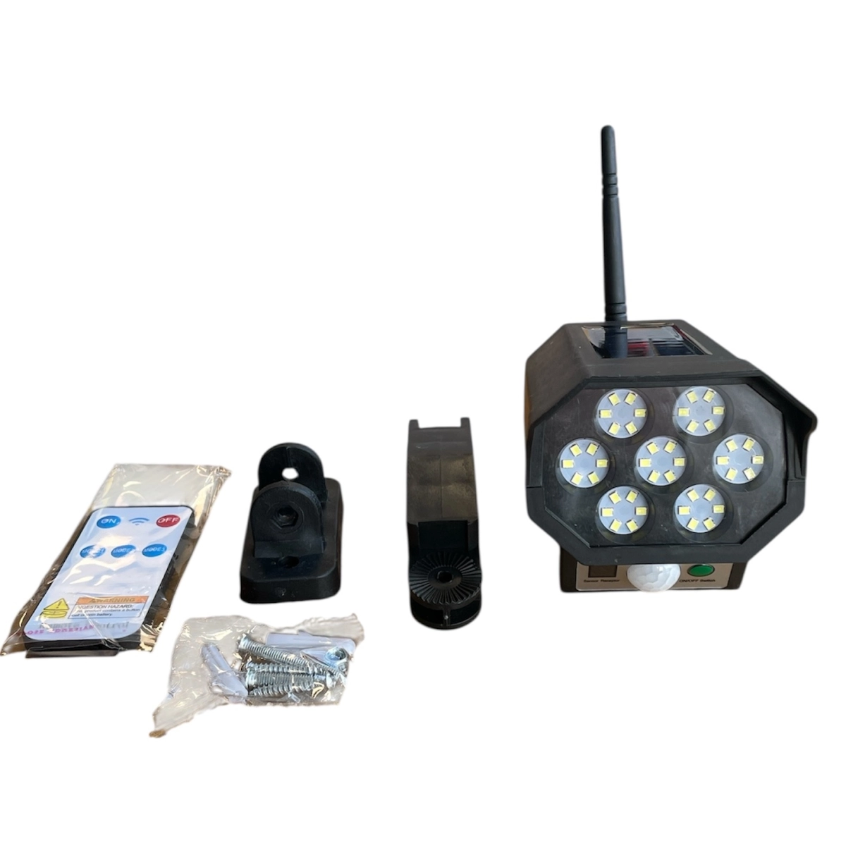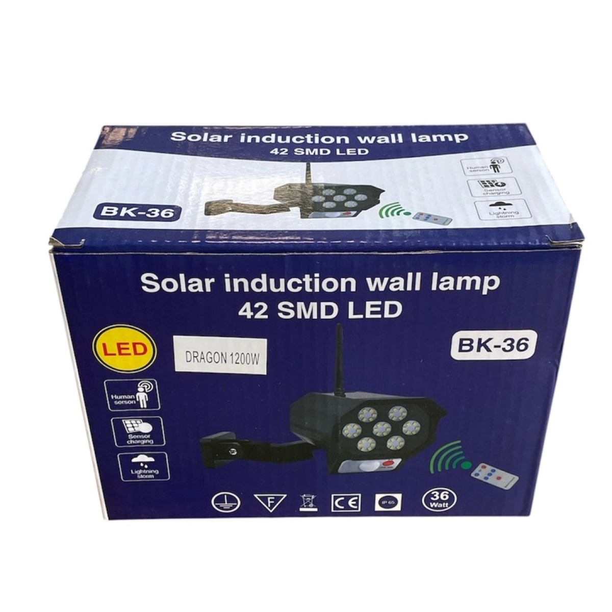 BK-36 Соларна Лампа с Вградена Камера и Висока Мощност за Външно Осветление BK-36 соларна лампа с камера е иновативно устройство, което комбинира ефективно външно осветление и допълнителна защита за вашия дом или бизнес. Тази енергийно независима лампа работи със слънчева енергия и предлага интелигентни функции, които правят охраната и осветяването лесни и надеждни, без нужда от кабели и сложен монтаж. Основни характеристики Мощност 1200W – осигурява силно и равномерно осветление на големи площи около дома или градината. Вграден дизайн на камера – лампата е оформена като охранителна камера, което създава допълнително възпиращо въздействие върху нежелани посетители. LED технология с 42 SMD диода – гарантира ярко бяло осветление с цветна температура 6000K, подходящо за нощно виждане. Водоустойчивост IP65 – устойчивост на атмосферни влияния, позволяваща употреба във всякакви външни условия. Вградена литиево-йонна батерия 2600mAh – осигурява до 6-8 часа работа след пълно зареждане на слънце. Регулируем наклон и въртене – 90° наклон и 360° въртене за оптимално насочване на светлината. Три режима на работа – постоянна светлина, засичане на движение с максимална яркост и мигащ червен светодиод за допълнителна видимост. Дистанционно управление – удобно управление на функциите от разстояние. Предимства на BK-36 Соларна Лампа с Камера Енергийна независимост: Работи изцяло със слънчеви панели, което елиминира разходите за ток и нуждата от електрическо захранване. Лесен монтаж без кабели: Проектирана за бърз и безпроблемен монтаж на фасади, входове, градински пътеки и гаражи. Усилена сигурност: Дизайнът, имитиращ камера, повишава усещането за охрана и намалява риска от влизане с взлом. Устойчивост на всякакви атмосферни условия: Благодарение на IP65 стандарта лампата функционира безпроблемно при дъжд, сняг и силен вятър. Икономичност и екологичност: Използването на LED технология и соларна енергия намалява вредното въздействие върху околната среда. Какво включва комплектът BK-36 соларна лампа с вградена камера и LED осветление Монтажни елементи за лесен и стабилен монтаж на стена или дърво Дистанционно управление с пълен набор от функции Зарядно устройство за допълнително зареждане при необходимост Подробно ръководство за инсталация и употреба Изберете BK-36 Соларна Лампа с Камера за надеждна, икономична и иновативна система за външно осветление и охрана. Поръчайте сега и осигурете безопасност и комфорт за вашия дом или бизнес с помощта на модерна технология и енергийна ефективност!