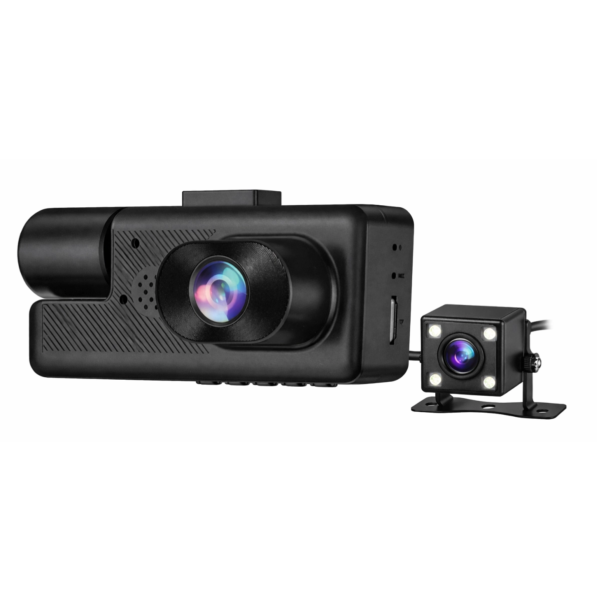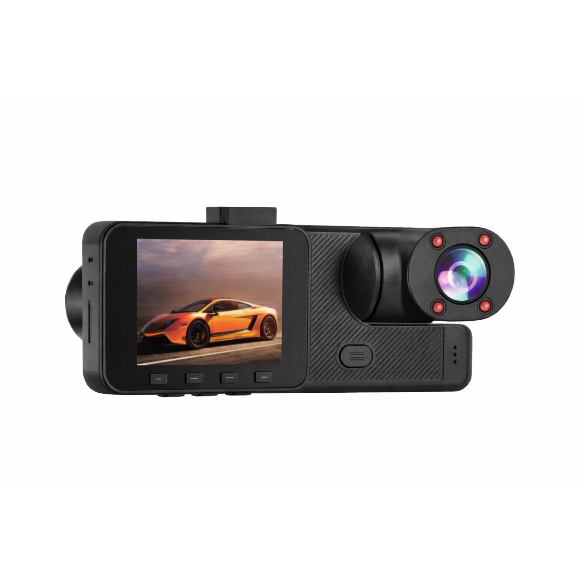 • Двойни камери с предна и задна видимост: Предната камера улавя пътя пред автомобила, а задната камера предоставя гледка към трафика зад вас, което намалява слепите зони и повишава безопасността.