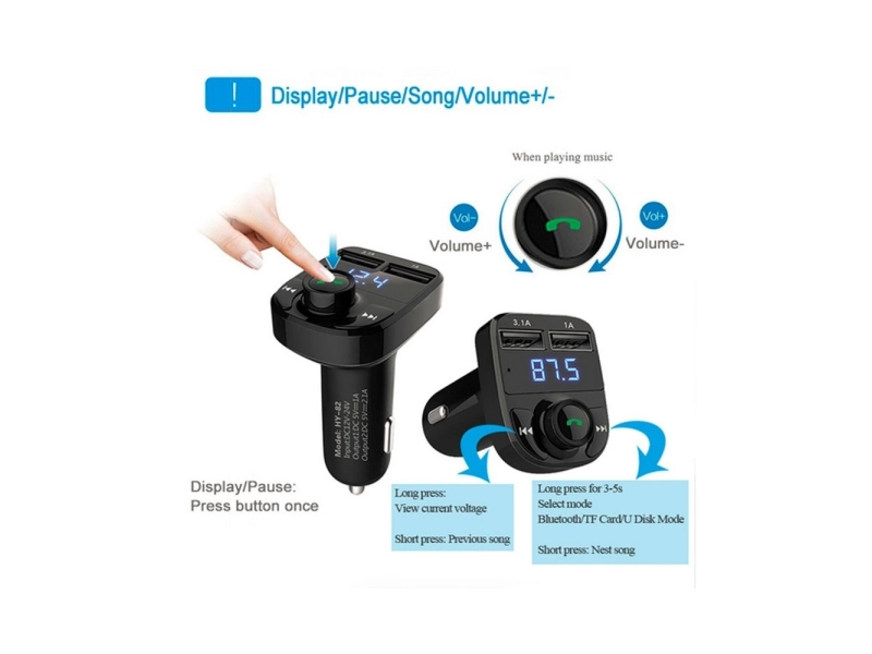 Трансмитер за кола X8 с Функция BLUETOOTH: обхват до 5 метра Функция HANDSFREE: провеждате разговори „свободни ръце“