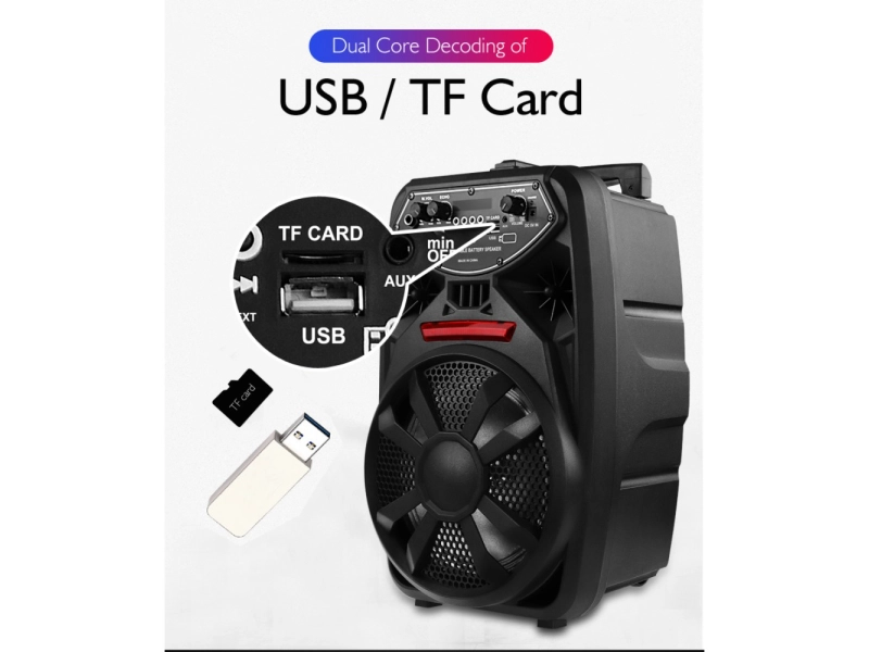 Преносимата Bluetooth караоке тонколона PK-09 е създадена за всички, които обичат да се забавляват! Със своя 8-инчов говорител и изходна мощност от 10W, тя осигурява кристално чист и силен звук, подходящ за караоке, партита, сватби, ресторанти или домашни събирания. Вграденият FM радио приемник и възможностите за възпроизвеждане на MP3 файлове превръщат всяко събитие в незабравимо парти!