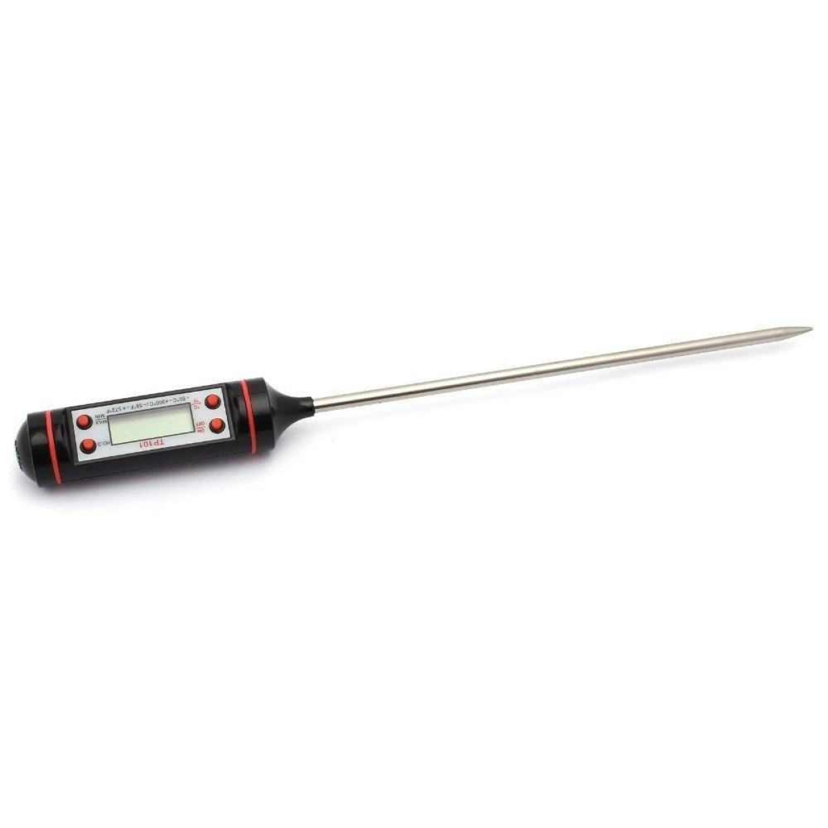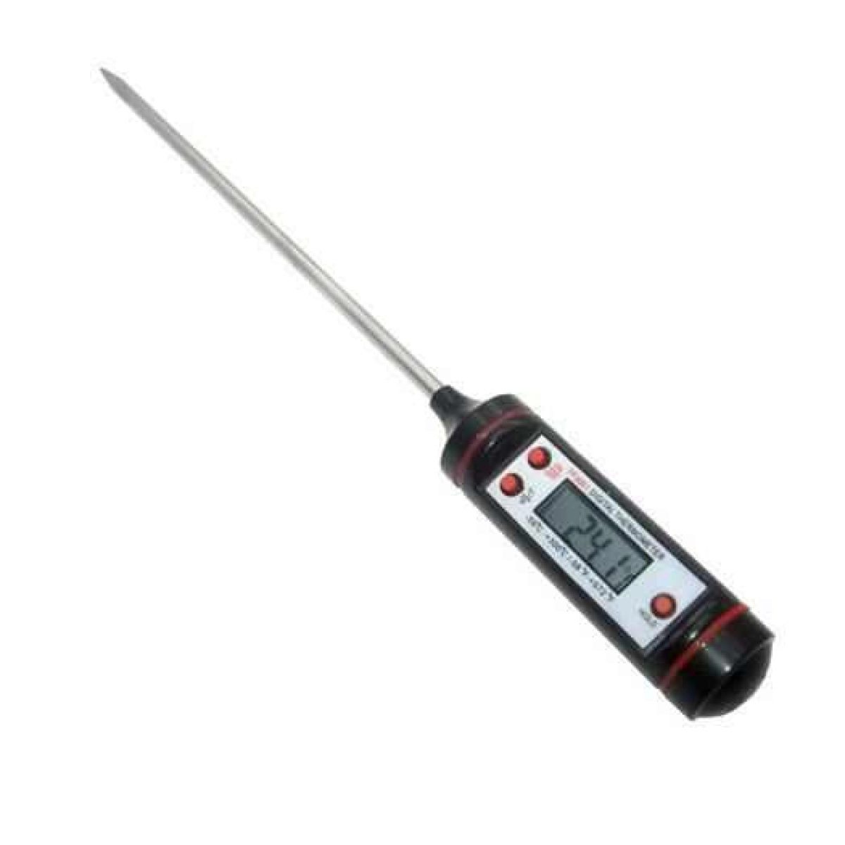 Дигитален термометър с BBQ сонда и лесен за четене LCD дисплей Този дигитален термометър с BBQ сонда предлага прецизно измерване на температурата и удобство при използване в кухнята и други области. С ярък LCD екран и надеждна сонда от неръждаема стомана, устройството е подходящо за различни приложения, осигурявайки бързи и точни резултати. Основни характеристики Високопрецизна сонда от неръждаема стомана с дължина 150 мм, подходяща за измерване на температура на месо, течности и други материали. Ясен и голям LCD дисплей, който позволява лесно четене на резултатите дори при слаба светлина. Широк температурен диапазон от -50 до +300°С, подходящ за кулинарни, лабораторни и промишлени нужди. Възможност за смяна между градуси по Целзий и Фаренхайт за по-голямо удобство при работа. Функция за задържане на показанието (Hold), позволяваща стабилно и удобно записване на измерената температура. Енергийно ефективен дизайн с дълъг живот на батерията, осигуряващ продължителна работа без честа смяна на елементите. Компактна кутийка с каишка за лесно носене и съхранение, идеална за ползване на открито и при готвене на барбекю. Защо да изберете този дигитален термометър с BBQ сонда Този уред е незаменим помощник за всеки, който търси точност и надеждност при измерване на температурата на храна и други обекти. Подходящ е за домашна и професионална употреба, включително барбекю, печене и лабораторни процеси. С удобния си дизайн и лесна употреба, термометърът гарантира безопасност и по-добър контрол върху готвенето и други температурни задачи. Поръчайте сега дигиталния термометър с BBQ сонда и се насладете на прецизни измервания и удобство при всяка употреба!
