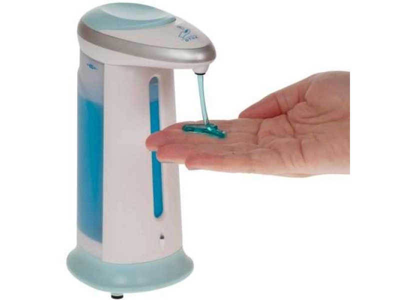 Диспенсърът работи с батерии, които осигуряват енергия за сензора и помпата.