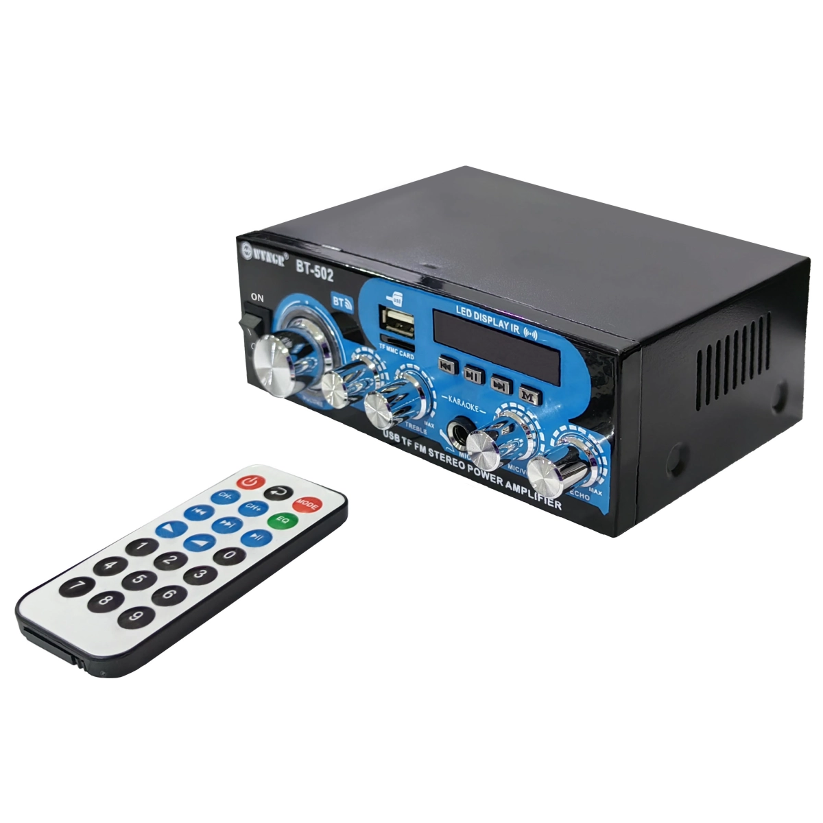 Мощен домашен усилвател BT-502 с Bluetooth, USB, FM и TFT екран. Отлично качество на звука. Поръчай лесно онлайн!