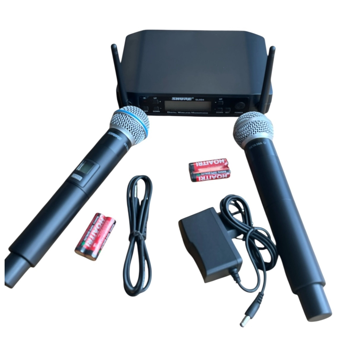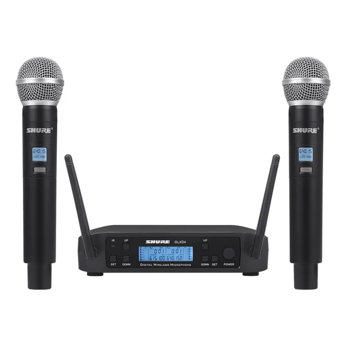 Комплектът включва два безжични микрофона Shure GLXD4.