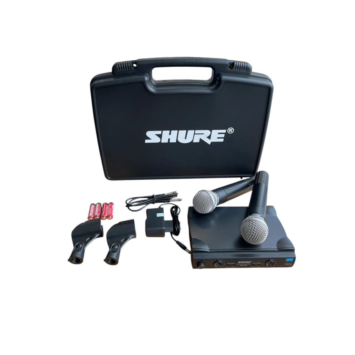Комплектът включва два професионални безжични микрофона SHURE SM-58.