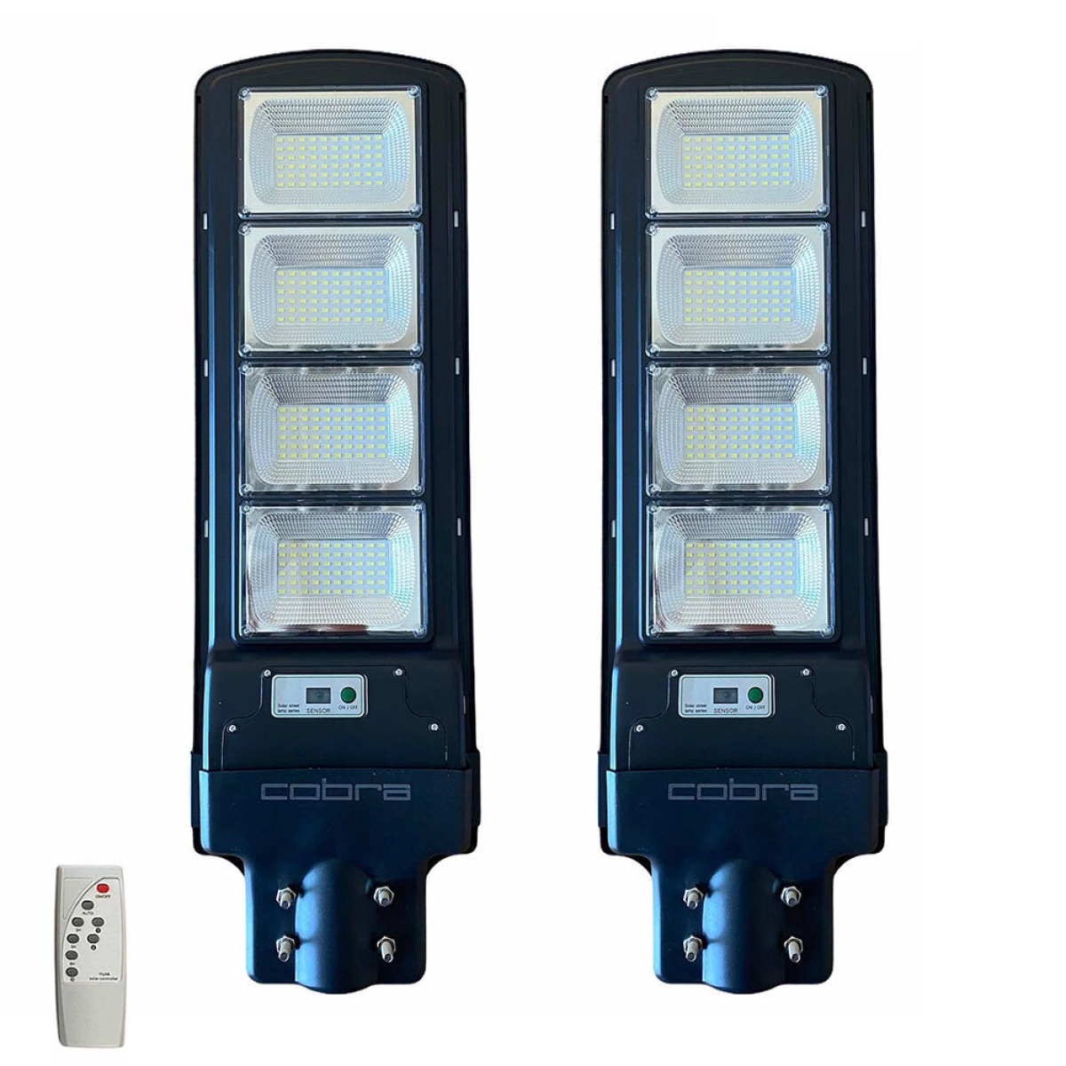 Двоен комплект соларни лампи JMK COBRA с мощност 500W. Идеални за външно осветление. Купи сега и спести електроенергия!
