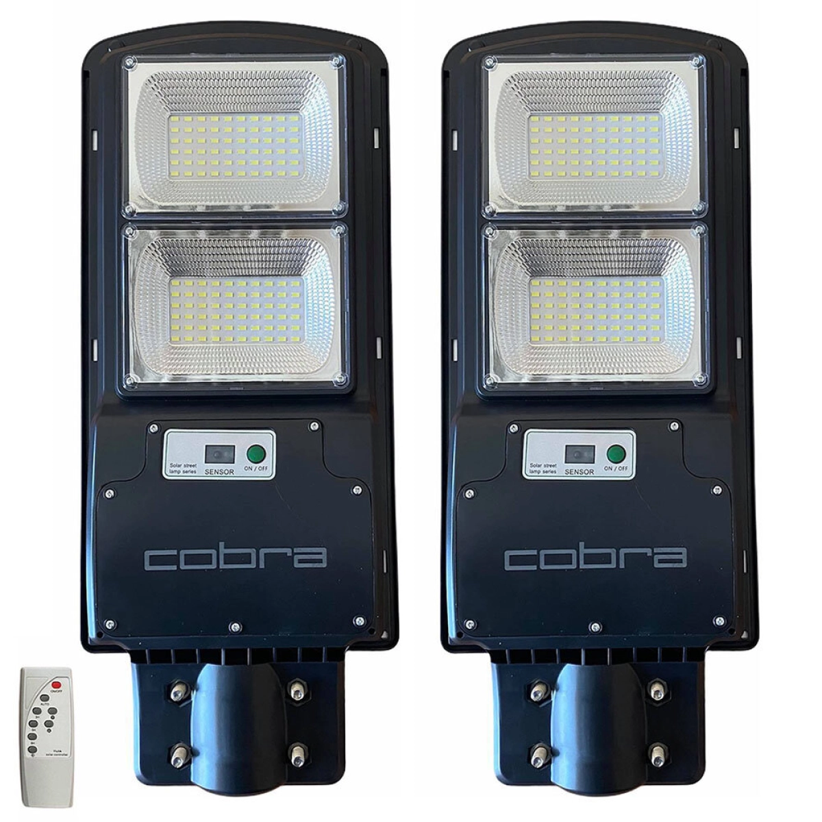 Двоен комплект соларни лампи JMK COBRA 250W за улично LED осветление. Купи надеждно и икономично осветление за двора!
