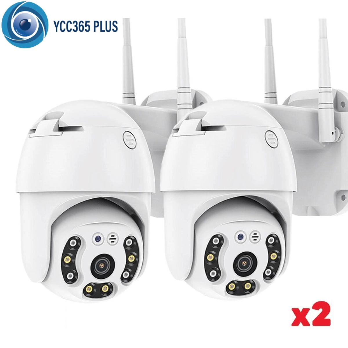 • Двойка бели външни въртящи WiFi AI камери 5MP YCC365