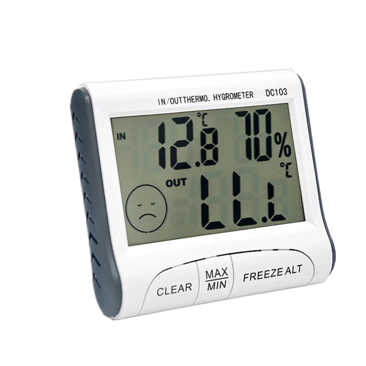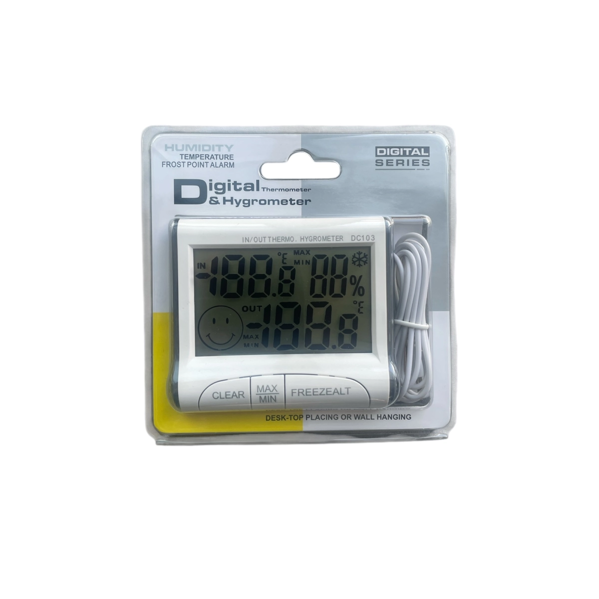 Електронният влагомер и термометър DC103 със сензор е надеждно устройство, предназначено за точно и бързо измерване на температура и влажност в различни условия. Със своята цифрова технология и удобен сензор, той е идеален избор за професионална и домашна употреба, като осигурява висока точност и лесна работа.