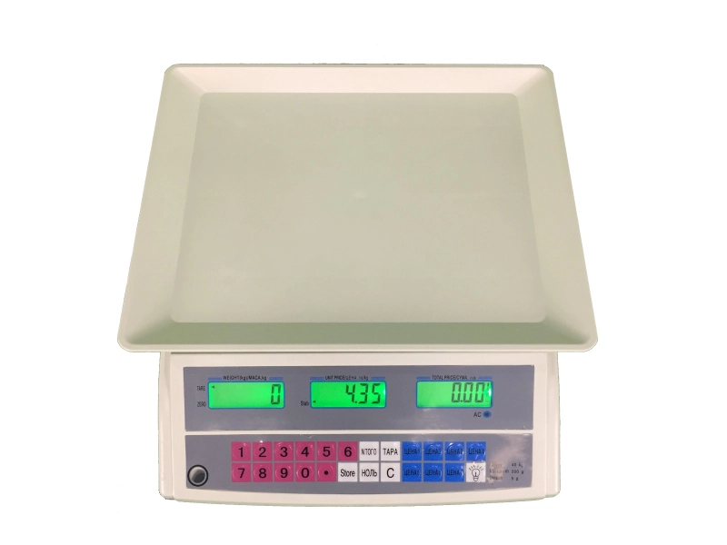 ACS-C електронната везна е вид полиморфна измервателна машина. Везната мери прецизно, притежава лесни за използване операции, голям капацитет. В комплекта е включен захранващ кабел. Зарежда се акумулаторно, тоест зареждате продукта 2-3 часа и го ползвате около 2 седмици без да го включвате в контакта. РАЗМЕР НА ПЛАТФОРМАТА 23см x 33см пластмасова тарелка > Характеристика: – Спецификация: 3кг/1гр ; 6кг/2гр ; 15кг/5гр ; 30кг/10гр – Прецизност: степен III – Моментна скорост: 40 пъти в секунда – Отмерване: отмерената тежест се базира на сумата от моментните измервания – Претоварване: алармира при товар с 15% по-тежък от максималния