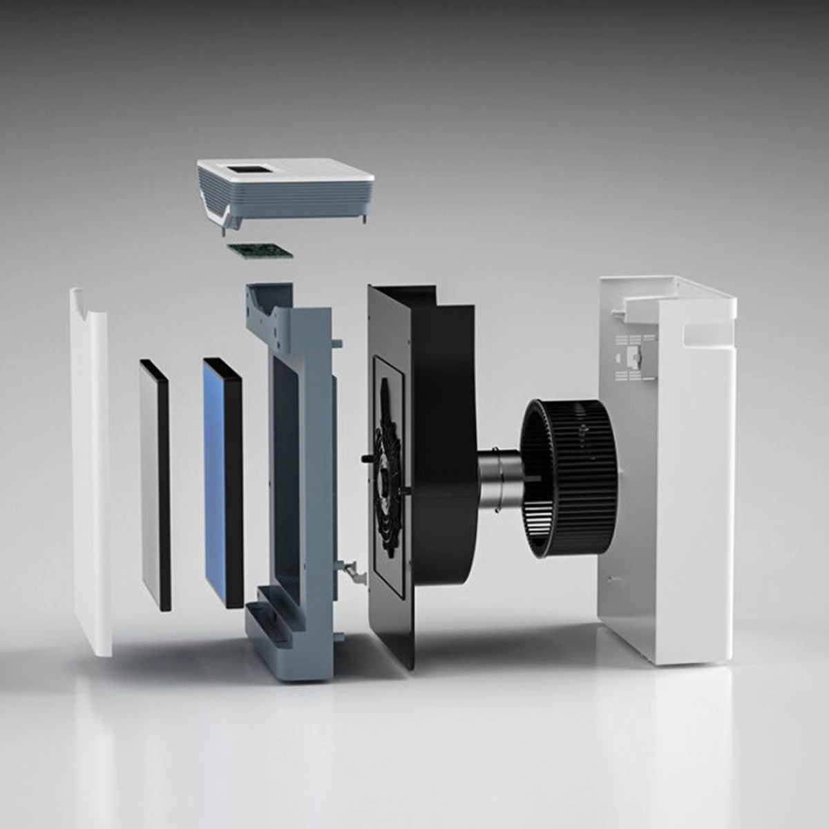 - Четиристепенна филтрация, включваща предварителен, HEPA, активен въглен и йонизатор за максимално пречистване
