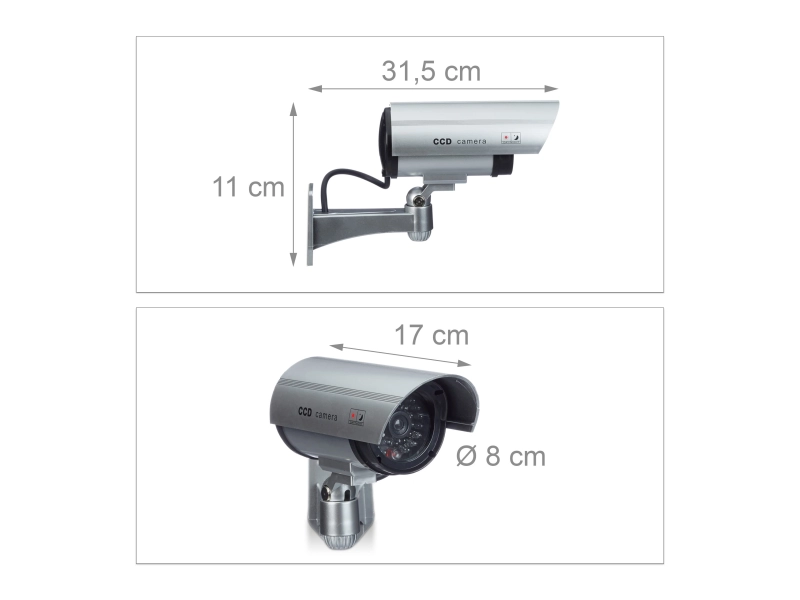 Фалшивата камера работи с 2 броя AA батерии, които не са включени в комплекта.