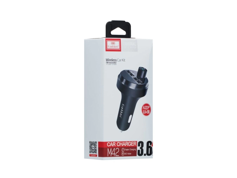 FM трансмитер Earldom ET-M42 с Bluetooth и бързо зареждане 3.6A FM трансмитер Earldom ET-M42 е иновативно устройство, което комбинира безжична Bluetooth свързаност с възможност за зареждане на мобилни устройства чрез USB порт с мощност 3.6A. Този модел е идеален за автомобилни ентусиасти, които търсят лесен начин да слушат любимата си музика и да поддържат устройствата си заредени по време на път. Основни характеристики Bluetooth технология версия 4.0 + EDR за стабилна и бърза връзка с вашия телефон или таблет Поддръжка на MP3, WMA и WAV аудио формати чрез Micro SD/TF карта и USB памет Вграден LCD дисплей, който показва информация за честотата и текущия аудио файл Еквалайзер с различни режими за оптимално аудио изживяване според предпочитанията ви Високоскоростен USB изход с ток 3.6A за бързо зареждане на смартфони, таблети и други устройства Дистанционно управление за удобна смяна на песни и настройки без да откъсвате ръце от волана Приложение FM трансмитерът Earldom ET-M42 е перфектното решение за автомобилна аудио система, която няма вграден Bluetooth или USB вход. Свържете го към запалката на колата и лесно предавайте музика от телефона си към автомобила чрез FM честота. Освен това, устройството служи и като мощно зарядно за всички ваши мобилни джаджи, което го прави незаменим аксесоар за дълги пътувания. Защо да изберете този продукт Този FM трансмитер се отличава с лесна инсталация и многофункционалност, съчетавайки качествен звук, удобство и бързо зареждане в едно компактно устройство. Моделът Earldom ET-M42 предлага устойчив дизайн и надеждна работа, които гарантират комфорт и безопасност по време на шофиране. Поръчайте сега FM трансмитер Earldom ET-M42 и се насладете на безупречен звук и бързо зареждане в колата си!