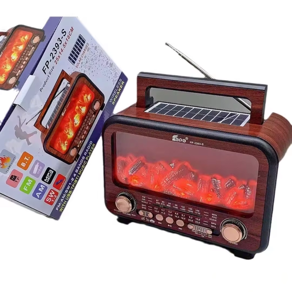 FP-2393S е иновативно соларно радио с Bluetooth, което комбинира удобството на безжичната връзка с разнообразие от аудио функции като FM радио и MP3 плеър. Този преносим мултифункционален уред е идеален за любителите на музиката, които търсят качество, гъвкавост и независимост от електрическата мрежа.