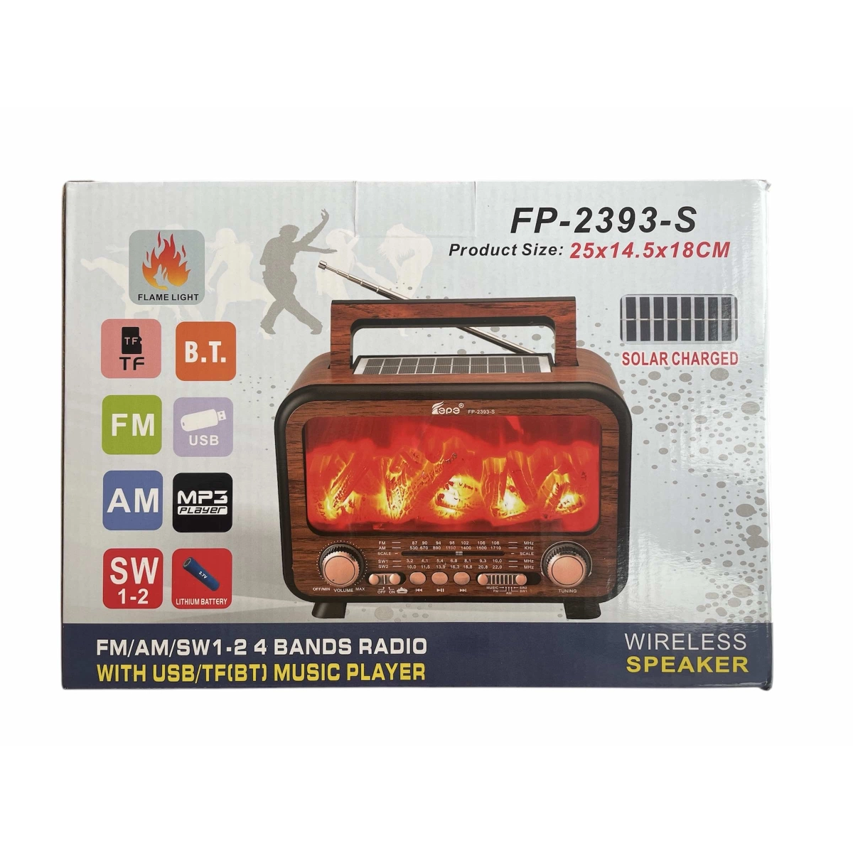 Купи FP-2393S – соларно радио с Bluetooth, FM радио, MP3 плеър и USB/SD поддръжка. Практично и удобно за всяко място.