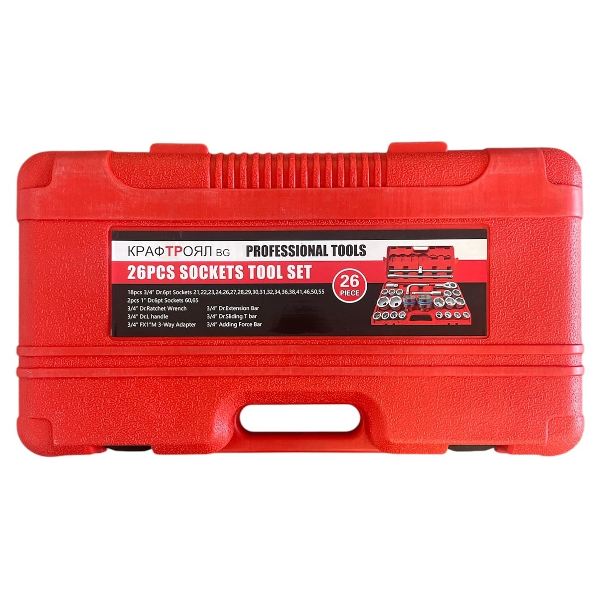 Професионален гедоре комплект камионски 26 части с 3/4’’ 6-стенни вложки от 21 до 65 мм