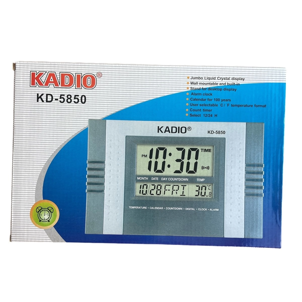 Изберете големия настолен и стенен цифров часовник KADIO KD-5850, за да се наслаждавате на точност, стил и практичност, които ще улеснят ежедневния ви ритъм и ще внесат модерен акцент във всеки интериор!