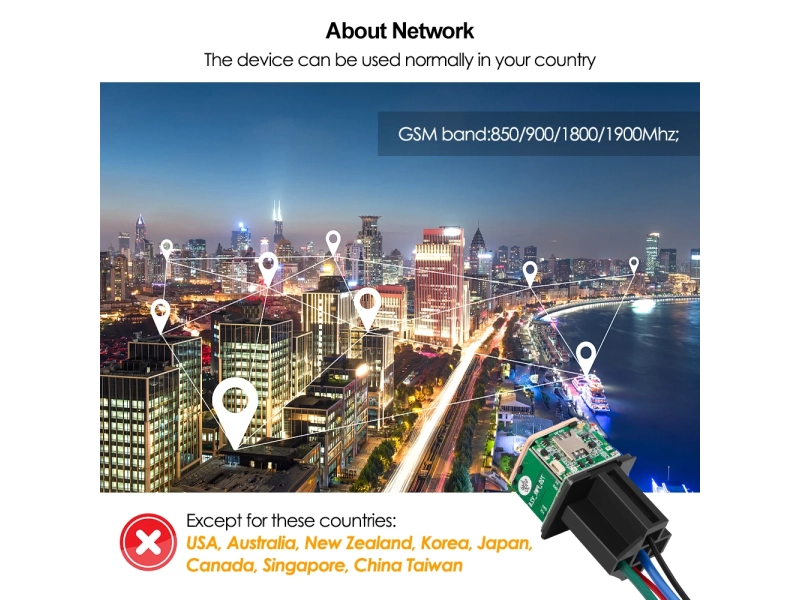 GPS проследяващо реле MV720 е усъвършенстван модул за проследяване на превозни средства, който предлага надеждно и прецизно позициониране в реално време. Устройството работи в глобален мащаб благодарение на поддръжката на GSM честоти 850/900/1800/1900 MHz, подходящи за различни региони и мобилни мрежи.