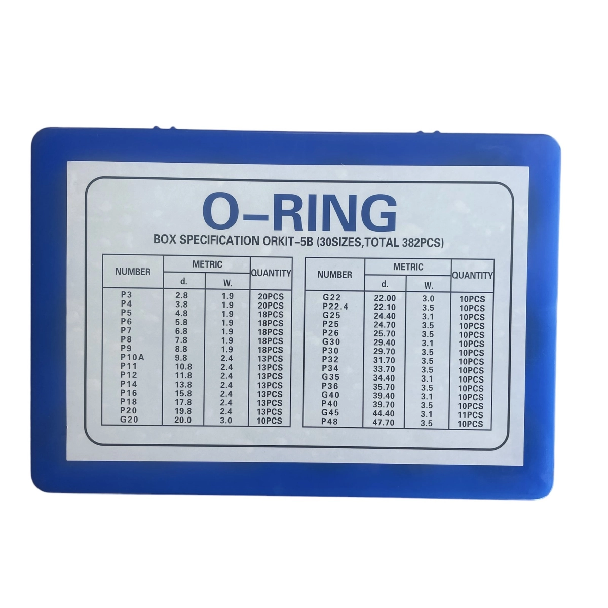 • Общо 382 броя О-пръстени, разделени в 32 различни размера, подходящи за различни видове уплътнения и приложения