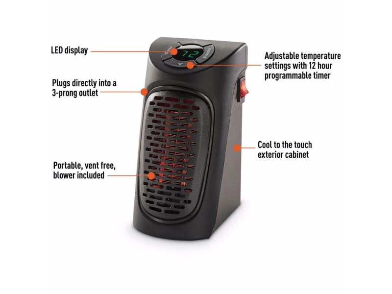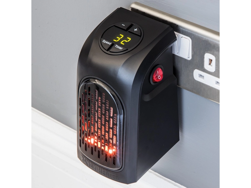 Handy Heater ще ви стопли на момента, като само го включите в контакта, без да заема никакво място! Освен това Handy Heater е енергоспестяващ и надежден, консумиращ незначително количество електричество и със сигурност спестяваш от сметките за отопление и ток. Същевременно е и достатъчно мощен, за да затопли студено помещение с размери до 20-22m2.Не мръзни, а затопли помещението лесно с Хенди Хийтър! Просто го вземи, включи в контакта, нагласи термостата (+/-) и затопли всяка стая в дома и на работното си място! Подходящ за хол, спални, детски стаи, баня и тоалетна, офиса, мазето или гаража, Хенди Хийтър е винаги под ръка! Сигурен уред без да правиш голяма инвестиция. Студените, мразовити стаи стават топли и уютни, а Хенди Хийтър консумира едва до 0.3 киловата, което е в пъти по-малко от конвенционалната духалка или инверторен климатик.Хенди Хийтър има:Надежден керамичен нагряващ елементПластмасова кутия, която не се нагрява.Автоматично изключване.Цифров дисплейЗадаване на температура: Термостат 60 F – 90 F / 15C – 33C /Компактен и удобен за пренасянеВключва се директно в контакта / без кабел /Таймер – програмируем до 12 ч.Две скорости на вентилатора – ниска и високаМощност: 400WИкономичен 0.4КВ/на час при 0 градуса и 0.26 КВ/на час при 25 градуса в помещението – електроенергия 220 Волта. Вграден керамичен нагревател и таймер за изкл. например след 1,2, 3 часа по желание. Уред без кабел – просто включи в контакта и настрой желаните градуси от 15 до 32, когато уреда достигне желаната температура той ще се изключи. Щекера му се върти за удобно включване за вертикален или водоравен контакт.