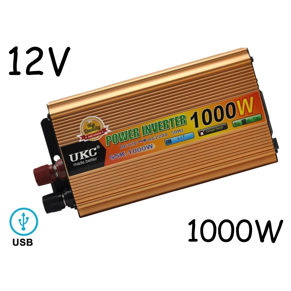 Инверторът UKC SSK-1000W 12V към 220V е надеждно решение за преобразуване на постояннотоково напрежение от 12V в стабилно променливо 220V електричество. Това устройство е идеално за къмпинг, пътувания и всякакви ситуации, при които нямате достъп до стандартен електрически контакт, а имате нужда да заредите или захраните различна техника като лаптоп, телевизор или мобилни устройства.