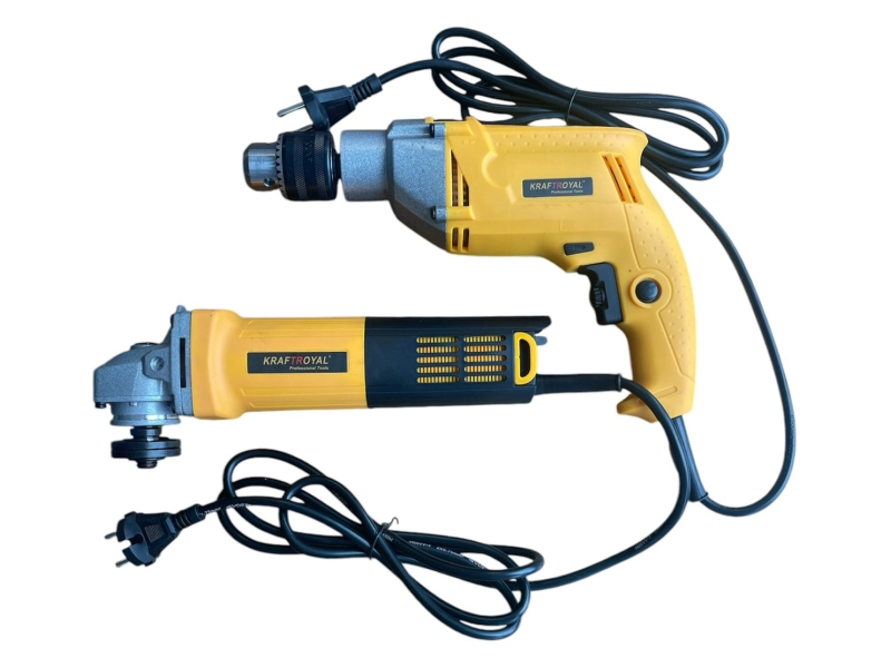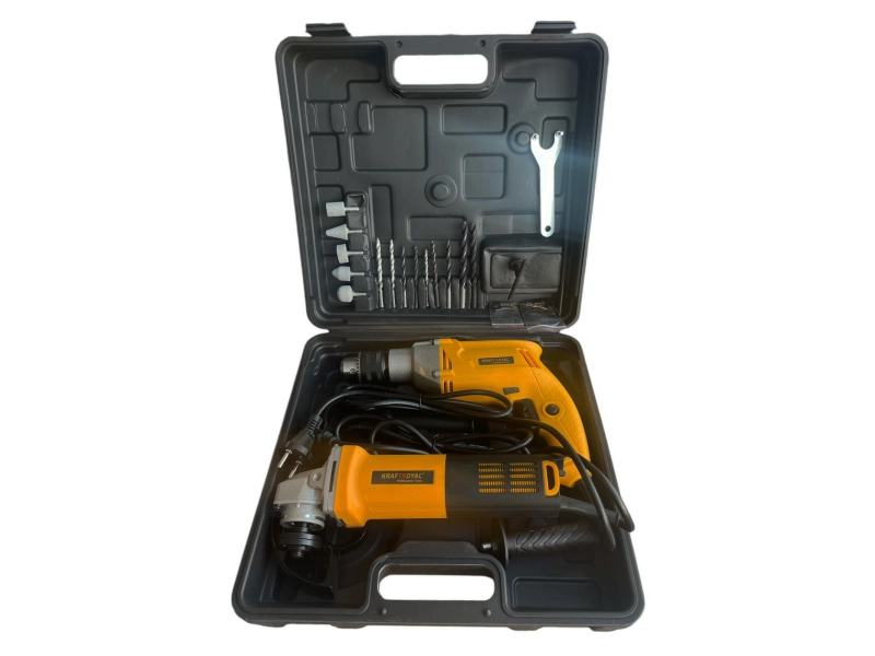 Практичен комплект KraftRoyal с ъглошлайф и бормашина 1100W за всяка работа. Високо качество и издръжливост. Купи сега!