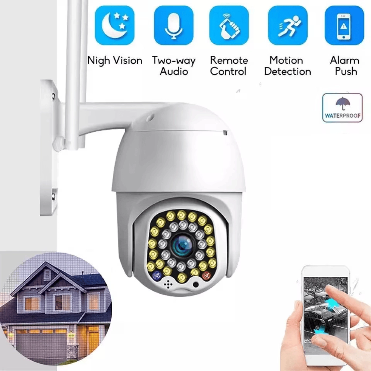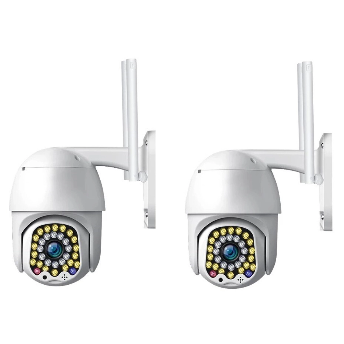 Представяме ви комплект 2 безжични външни куполни камери LYLU, оборудвани с 32 диода и 5MP сензор, които гарантират кристално ясна картина при всякакви условия. Тези външни IP камери са идеалното решение за надеждно видеонаблюдение на дома, офиса или търговски обекти, предлагащи лесна инсталация и стабилна безжична връзка.