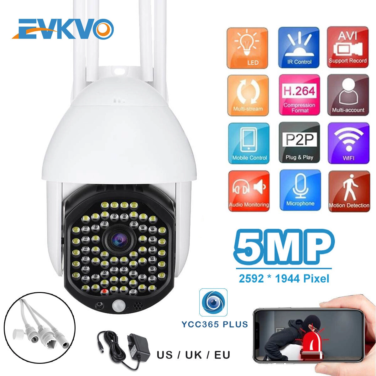Този комплект от 2 водоустойчиви WIFI Full HD камери предлага надеждно видеонаблюдение с висока резолюция и иновативни функции за защита на вашия дом или бизнес. Със 68 мощни LED диода и възможност за въртене до 320°, камерите гарантират широк обсег и детайлно наблюдение дори при слаба осветеност.