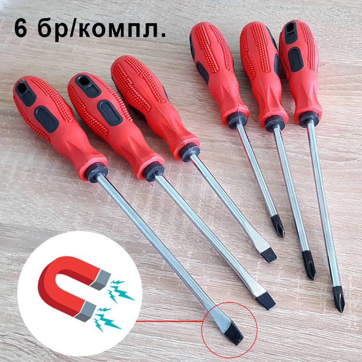Професионален комплект отвертки X&Z с 6 броя, магнитни и с прави и кръстати глави. Идеален за дома и работилницата. Поръчай лесно!