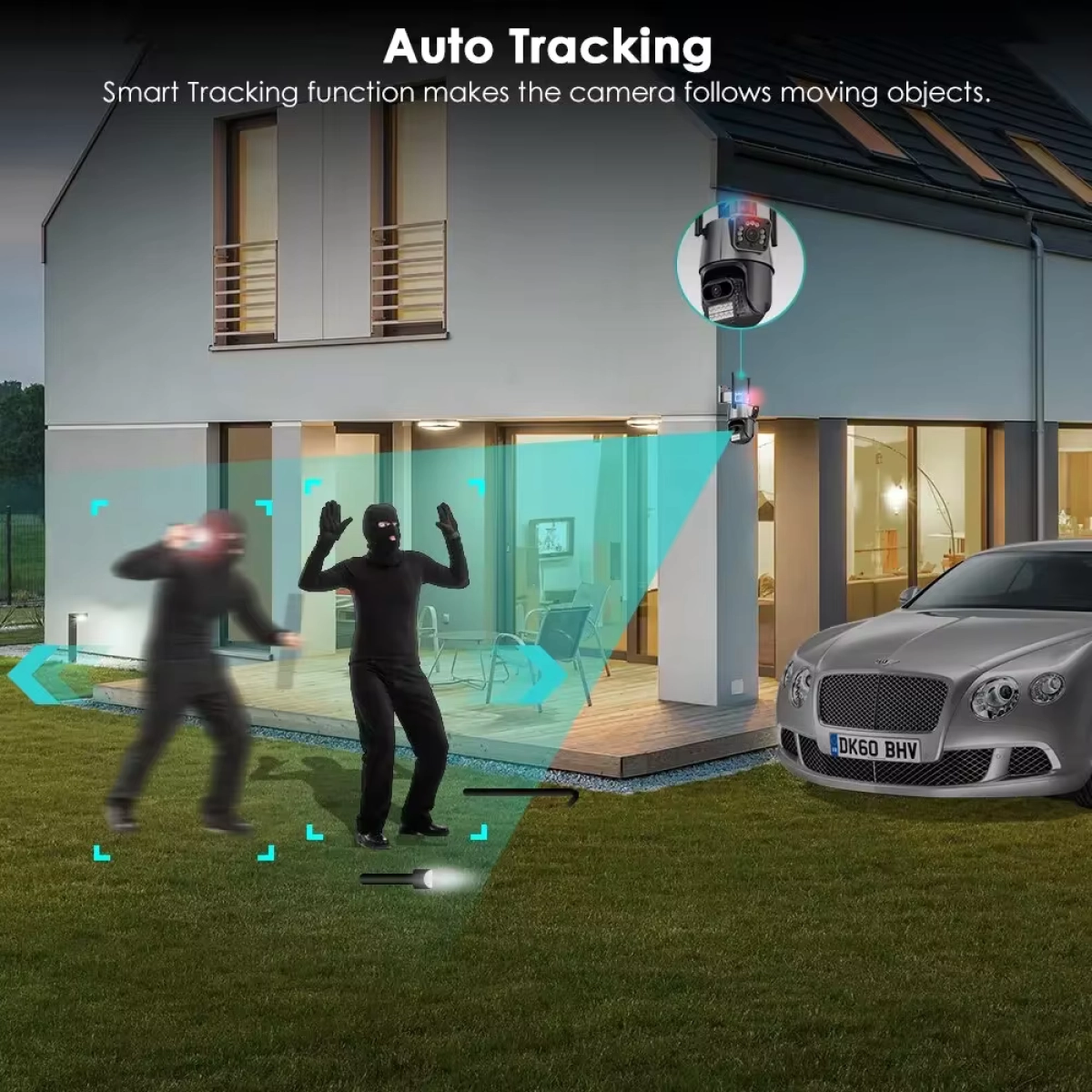Този комплект двойни външни WiFi AI камери е създаден да осигури максимална сигурност и удобство с помощта на новите технологии в областта на видео наблюдението. С автоматичното разпознаване на хора и проследяване, вие ще получавате само релевантни сигнали, което намалява стреса и необходимостта от постоянно наблюдение. Високото качество на изображението и издръжливата конструкция ги правят идеални за използване на открито през всички сезони.